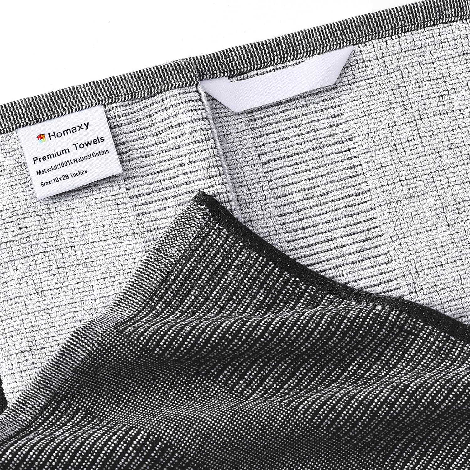 Homaxy Premium Kitchen Towels(18”x 28”, 6 Pack), Large Cotton Kitchen Hand Towels, Flat and Terry Dish Towels, 380 GSM Highly Absorbent Tea Towel Set with Hanging Loop, Black