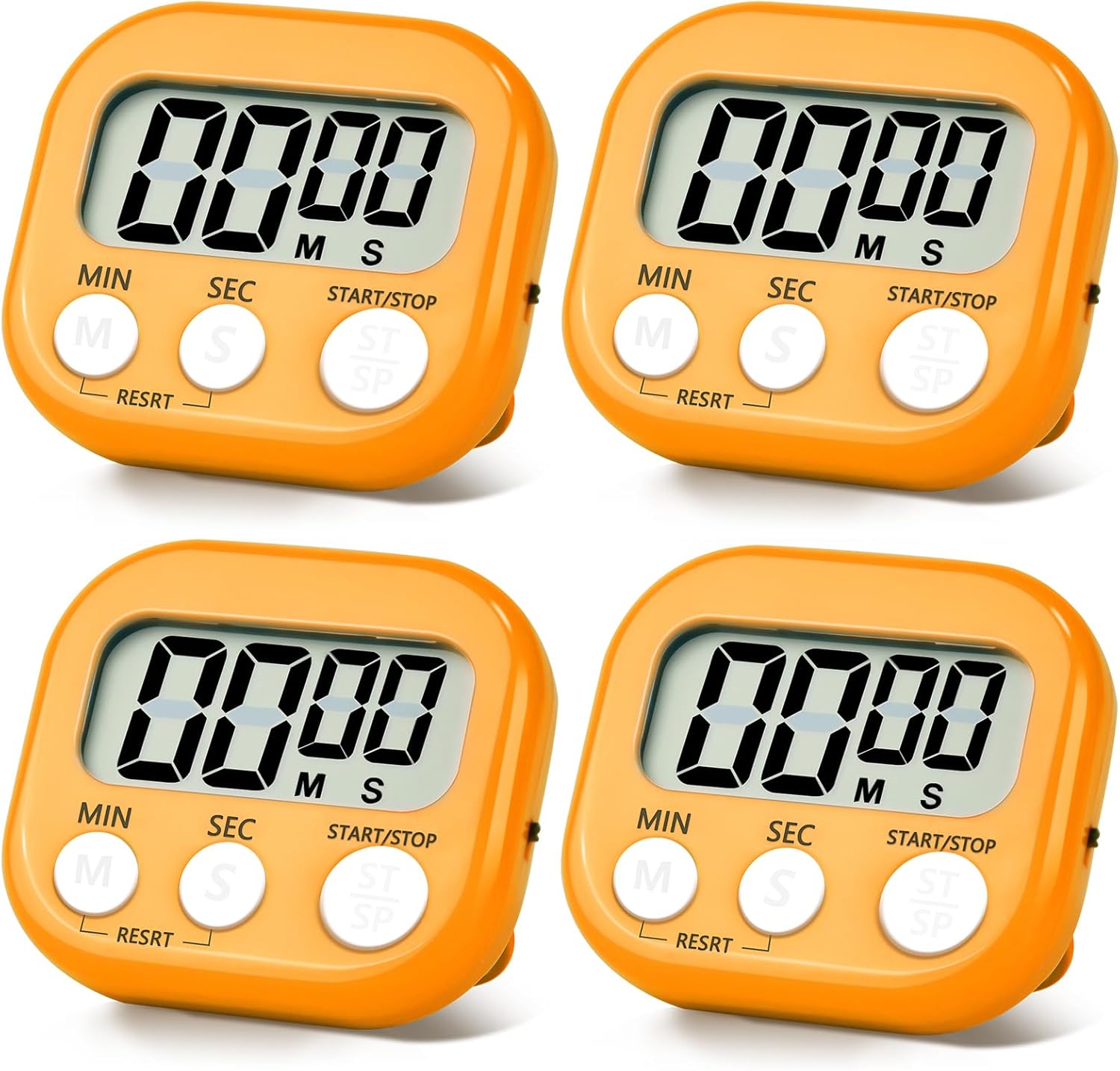 4 Pack Orange Digital Kitchen Timer Magnetic Digital Timer with Big Display Loud Ring Cooking Timers for Cooking, Game, Gym, Break Time, Classroom(4, Orange)