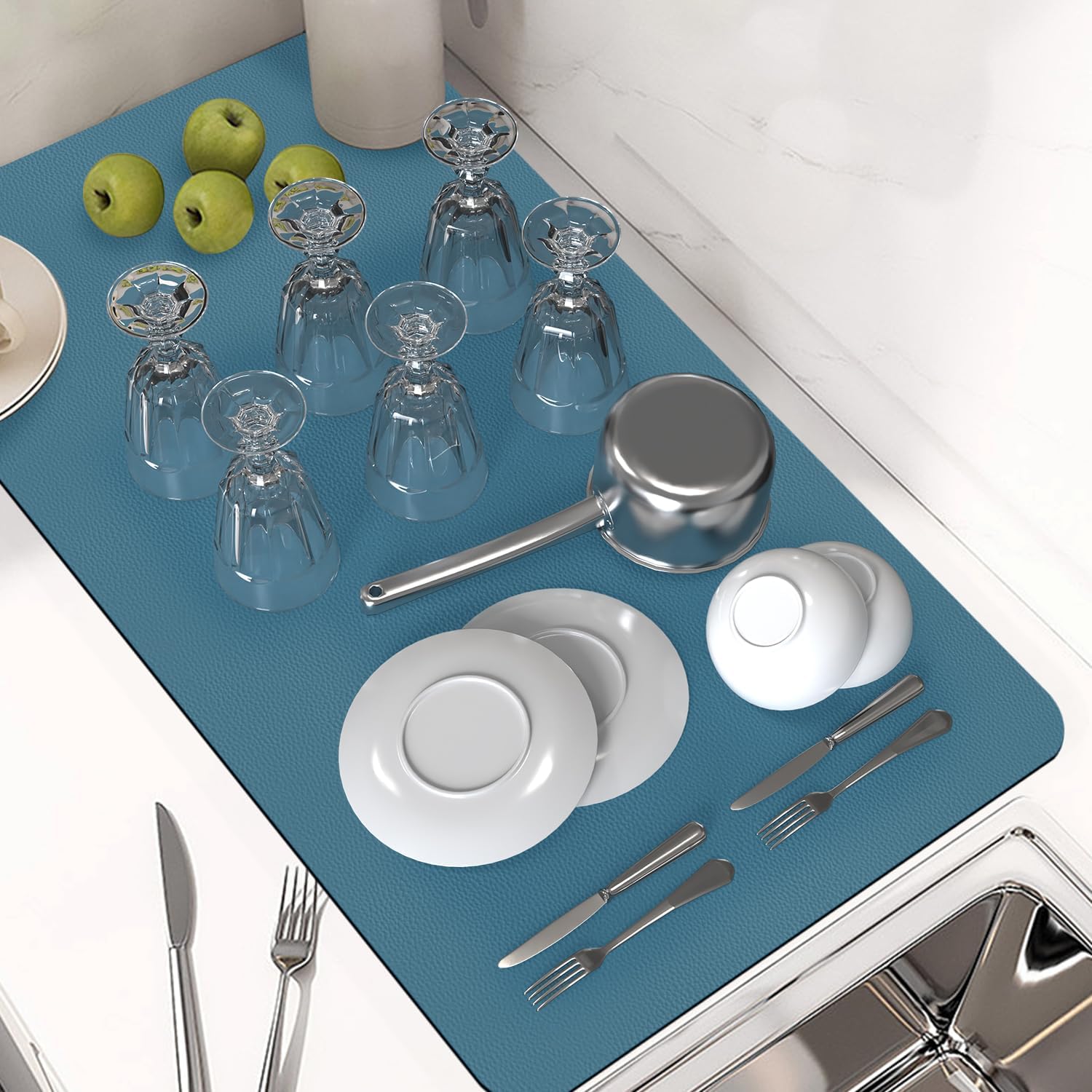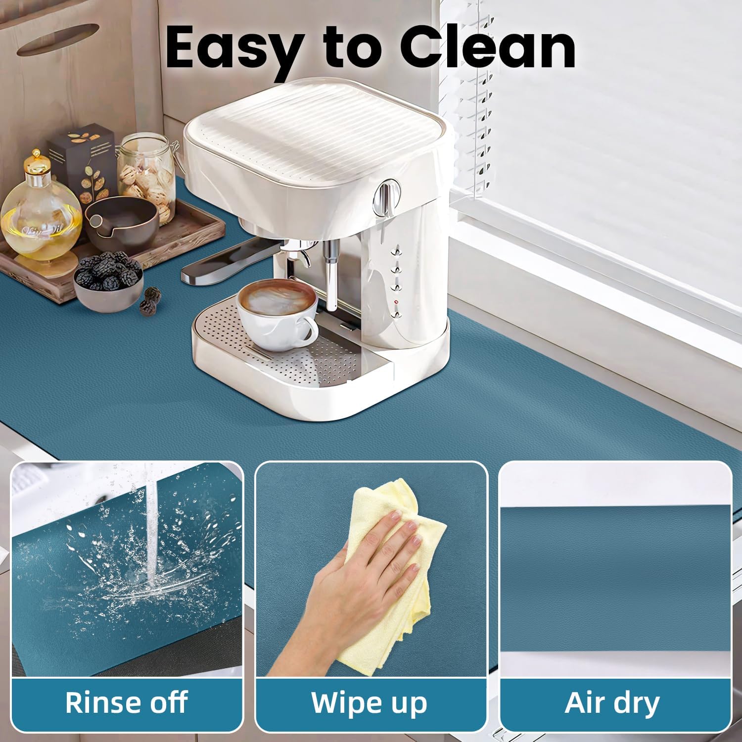 PoYang 31"x17" Coffee Mat X-Large, Coffee Bar Accessories for Countertop, Absorbent Dish Drying Mat, Anti-Slip and Hide Stain Pad for Espresso Machine, Espresso Maker and Kitchen Counter, Blue