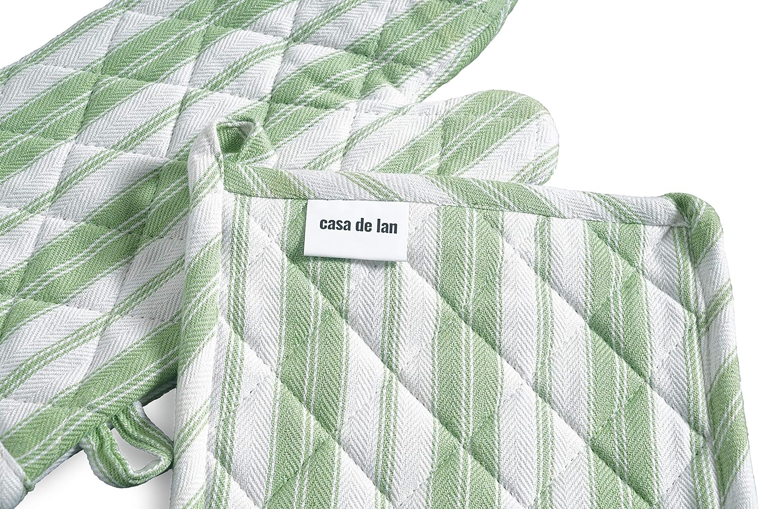 - Oven Mitt & Potholder Set - Durable Heat Resistant Gloves - Thick Mittens for Kitchen - Suitable for Cooking, Baking, Grilling – BBQ - 1 Oven Mitts & 1 Potholders – Grass Green Stripes - Casa De Lan
