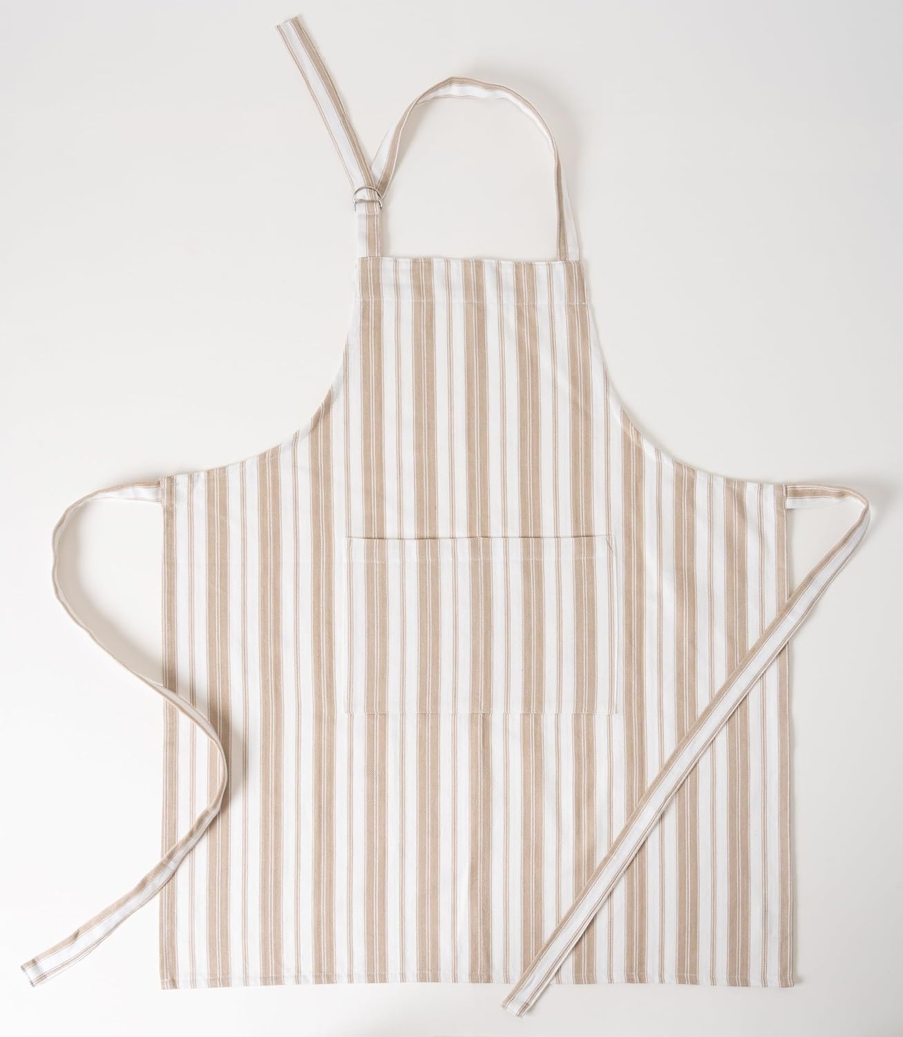 1 Oven Mitt, 1 PotHolder & 1 Kitchen Apron Set - Durable Heat Resistant Gloves - Thick Mittens for Kitchen - Suitable for Cooking, Baking, Grilling – for Men & Women – Taupe Stripes - Casa De Lan