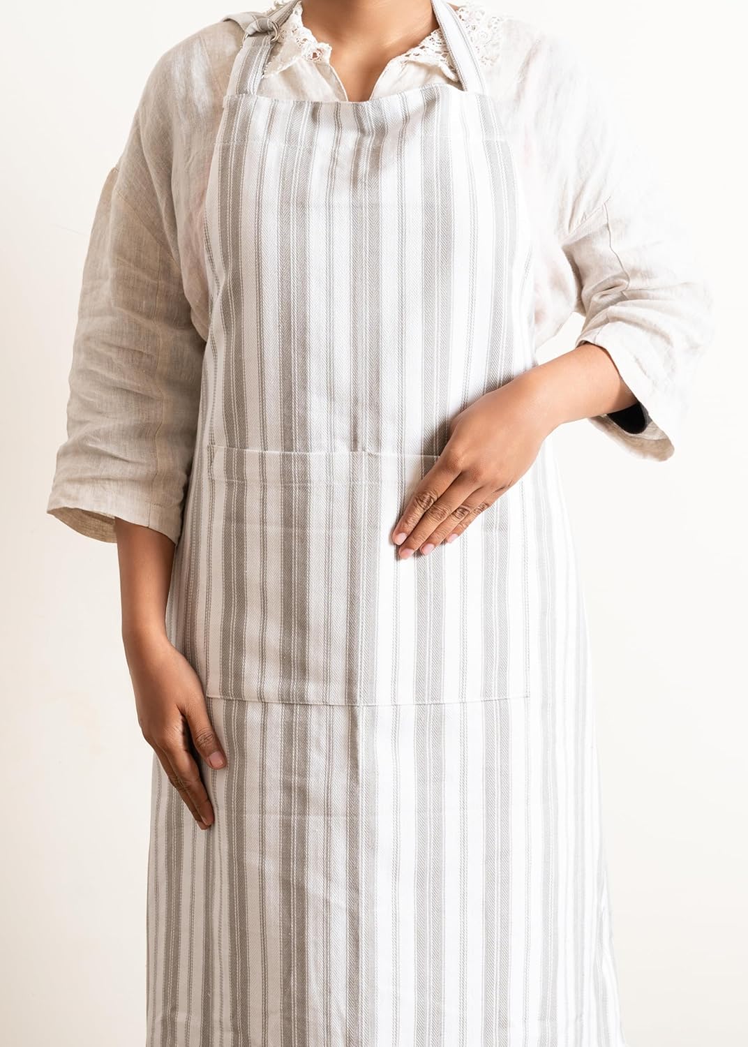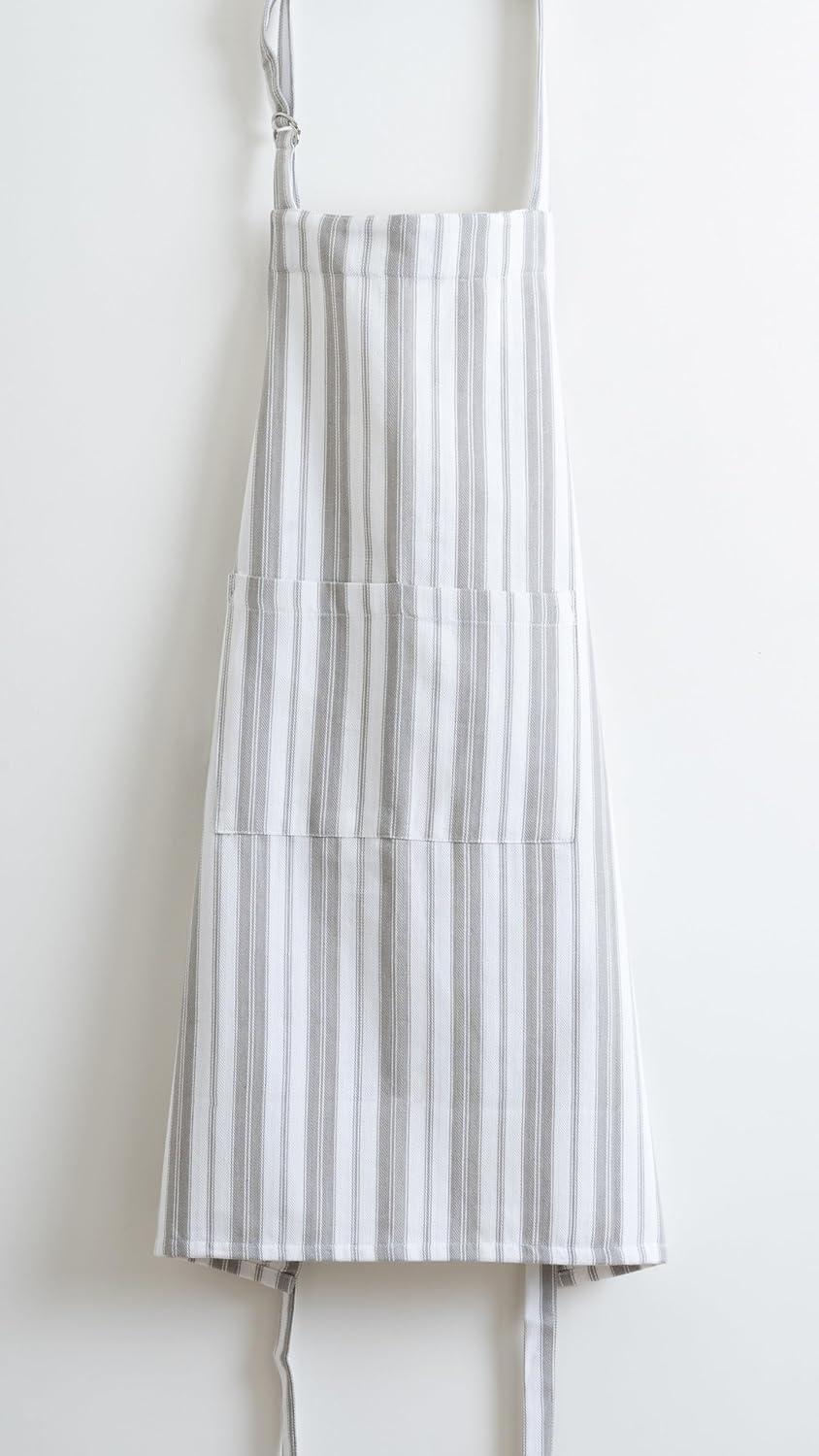 1 Oven Mitt, 1 PotHolder & 1 Kitchen Apron Set - Durable Heat Resistant Gloves - Thick Mittens for Kitchen - Suitable for Cooking, Baking, Grilling – Men & Women – Light Grey Stripes - Casa De Lan