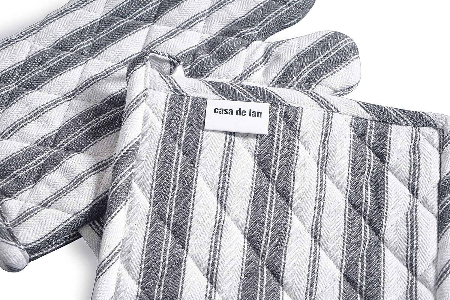 1 Oven Mitt, 1 PotHolder & 1 Kitchen Apron Set - Durable Heat Resistant Gloves - Thick Mittens for Kitchen - Suitable for Cooking, Baking, Grilling – Men & Women – Dark Grey Stripes - Casa De Lan