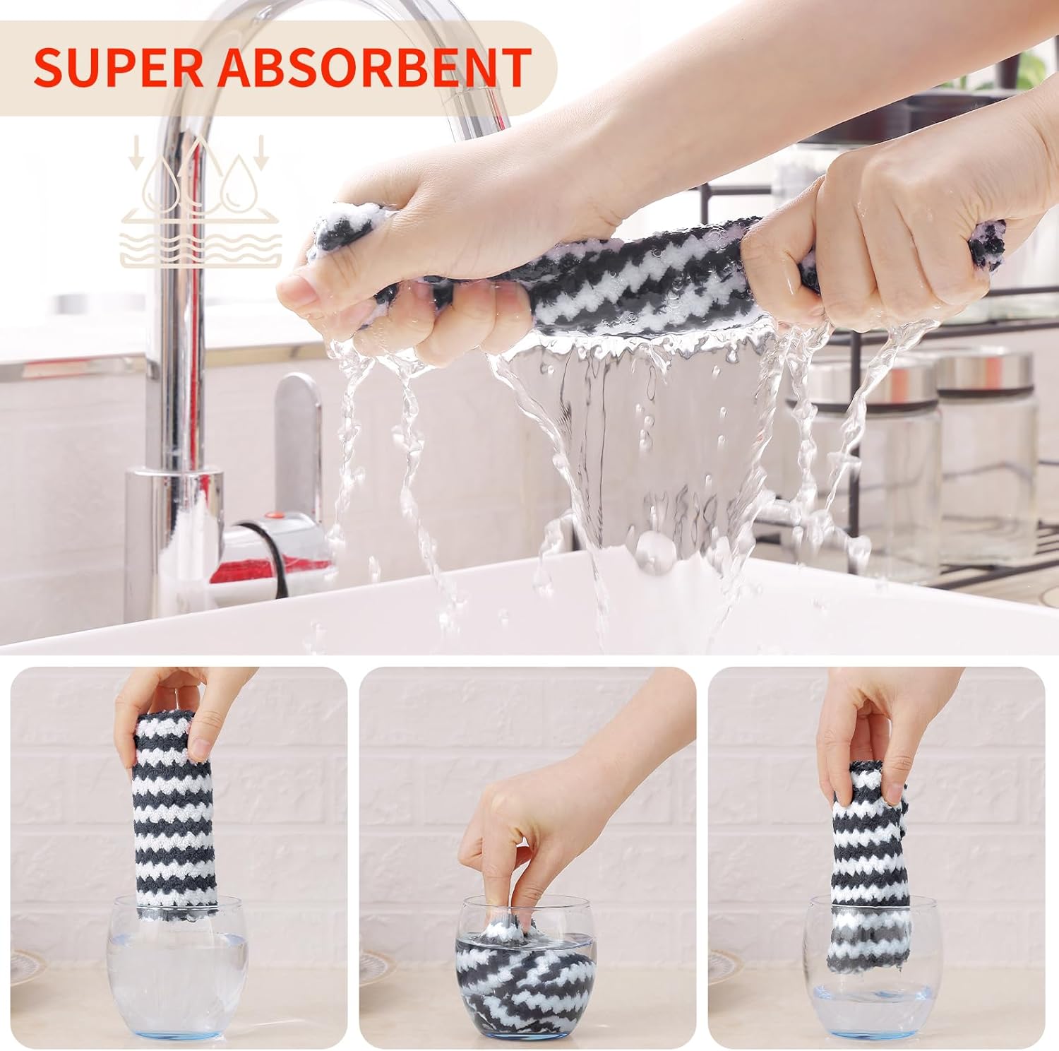 - Value Pack: The collection includes 12 pack Microfiber cleaning cloths, The wavy pattern design and available in a variety of colors to coordinate with any kitchen décor. Measuring 10 x 10 and 10 x 20 inches, it is suitable for any home kitchen needs.
