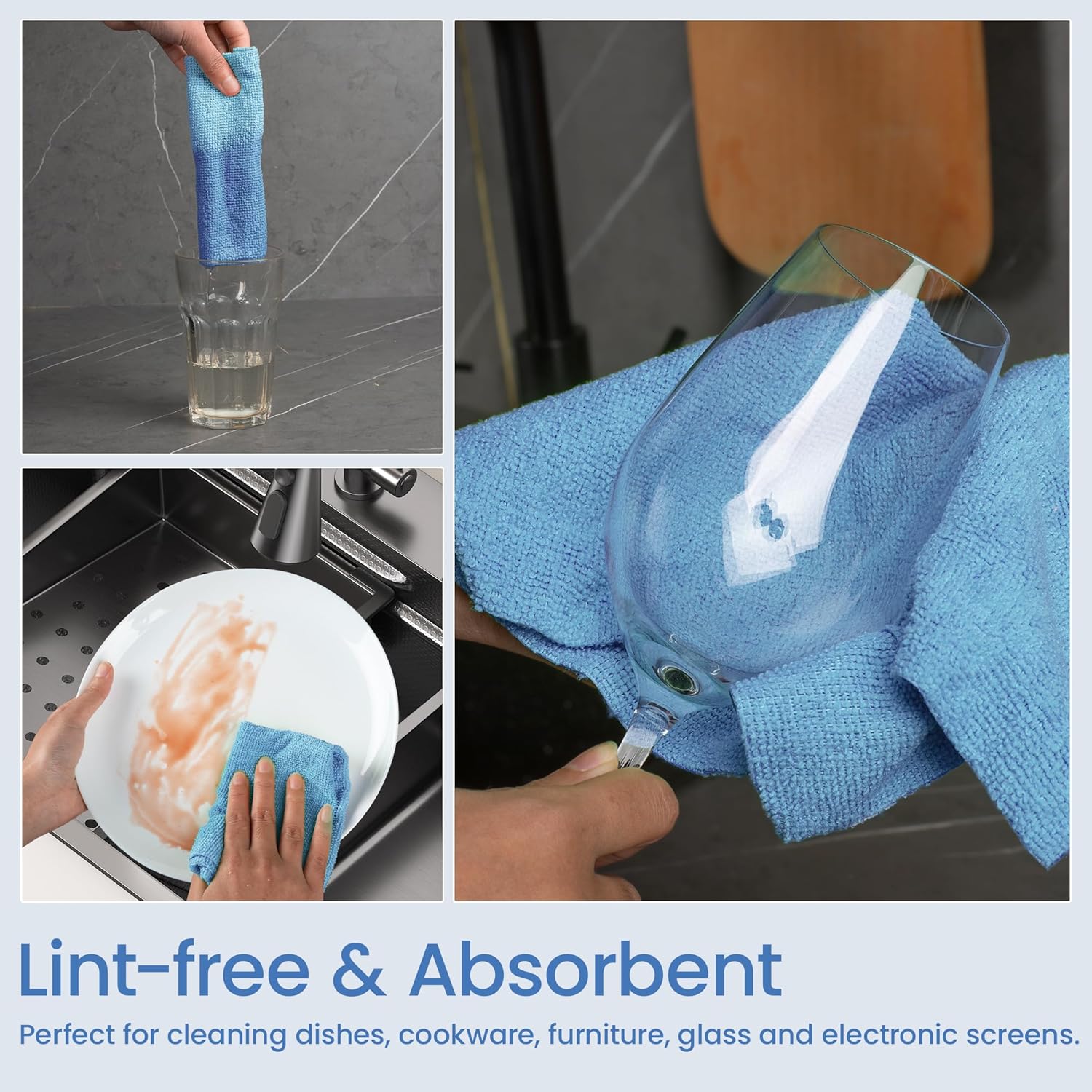 - [Lint-Free] Perfect for cleaning dishes, cookware, furniture, glass and electronic screens. It effortlessly picks up dust and smudges, leaving surfaces streak-free and sparkling. It can also be used to clean cars, stores or garages
