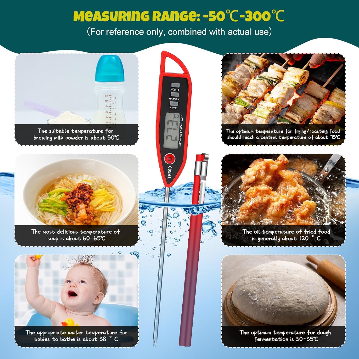 - Waterproof Capability: with strong waterproof abilities, this instant read thermometer for cooking is good for measuring the temperature of liquids like water, milk, and even candles; Its entire body is washable, making it easy to clean and maintain