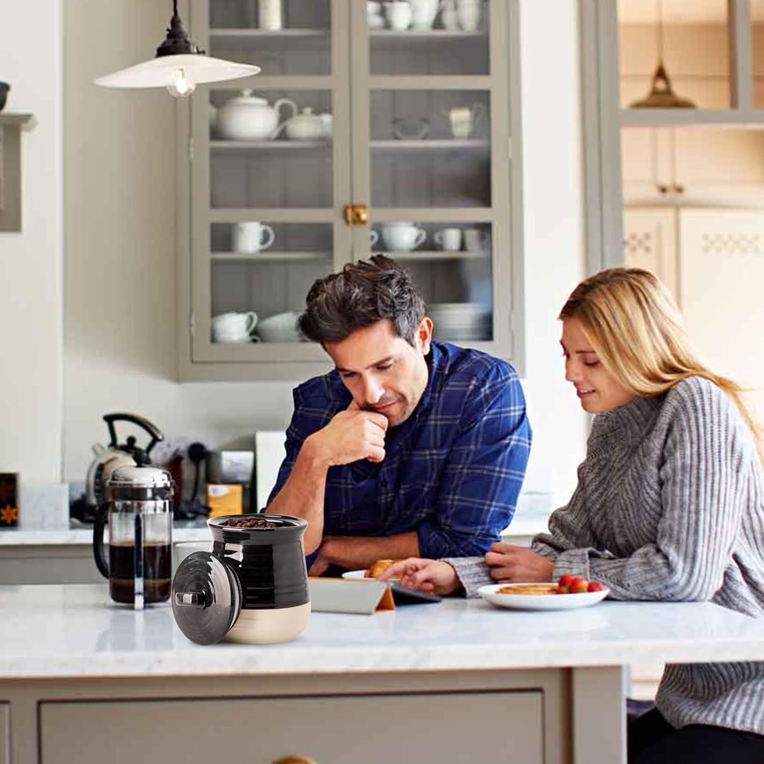 - CHIC KITCHEN DECOR: Enhance the beauty of your kitchen with this jar with lid in a sleek and sophisticated combination of black and white. The Hasense sugar canister is not only practical, but also adds a touch of modern elegance to your kitchen decor