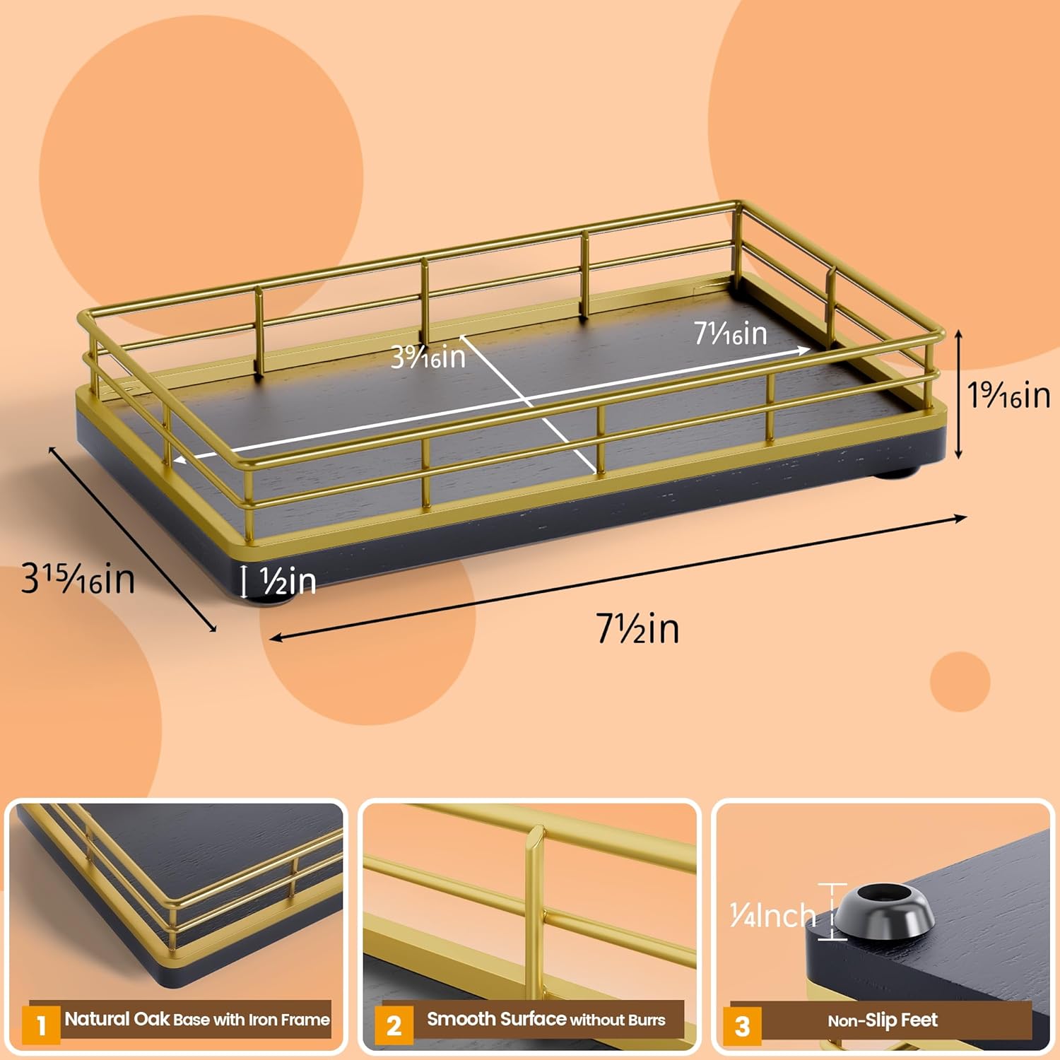 - Versatile Functionality: Elevate your daily routine with our tray for bathroom counter; Neatly arrange bathroom essentials like mouthwash with cups, toothbrushes, cotton swab, keeping your countertop tidy; Add a touch of elegance to your dresser by using the vanity tray to showcase perfumes, jewelry, and candles; The small tray can also be used to store keys, watches and change at the entrance