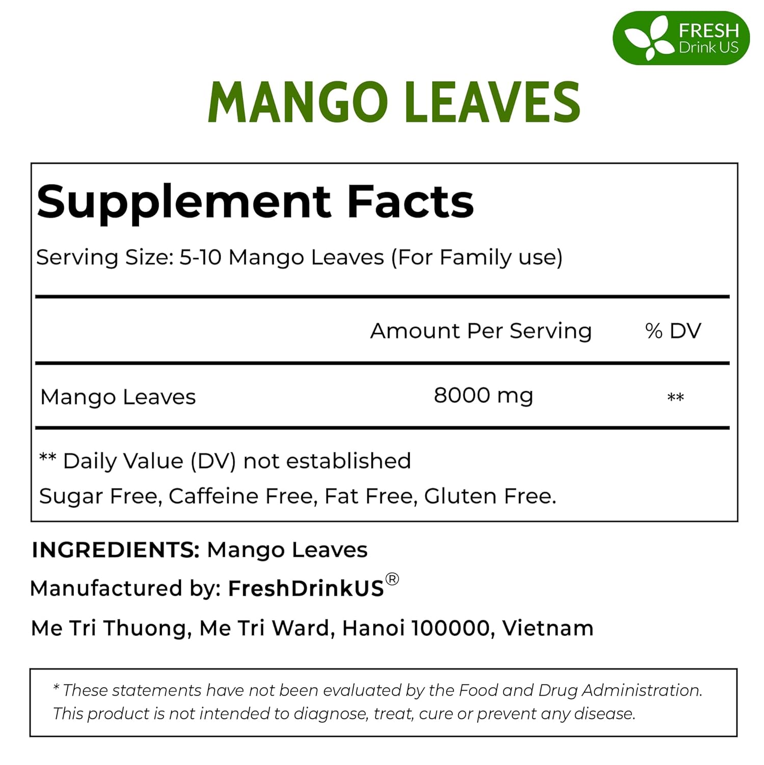 FreshDrinkUS, Premium 140+ Mango Whole Leaves Dried, 100% Natural & Pure from Dried Mango Leaves, Mango Leaf Tea, No Additives, No Caffeine, Vegan