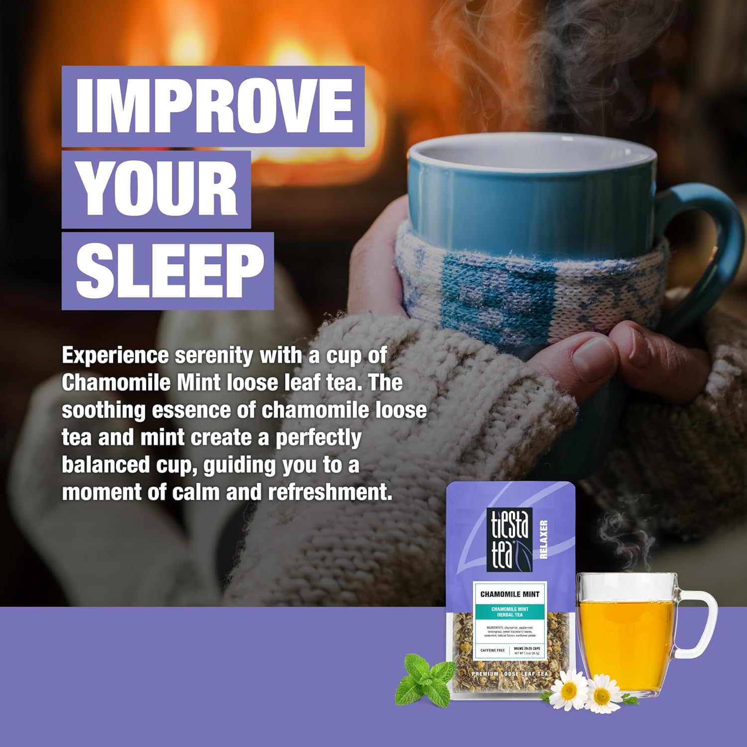 Tiesta Tea - Chamomile Mint, Loose Leaf, Chamomile Mint Herbal Tea, Premium Blend, Caffeine-Free Herbal Drink, Makes Hot or Iced & Up to 25 Cups, 1oz Resealable Pouch