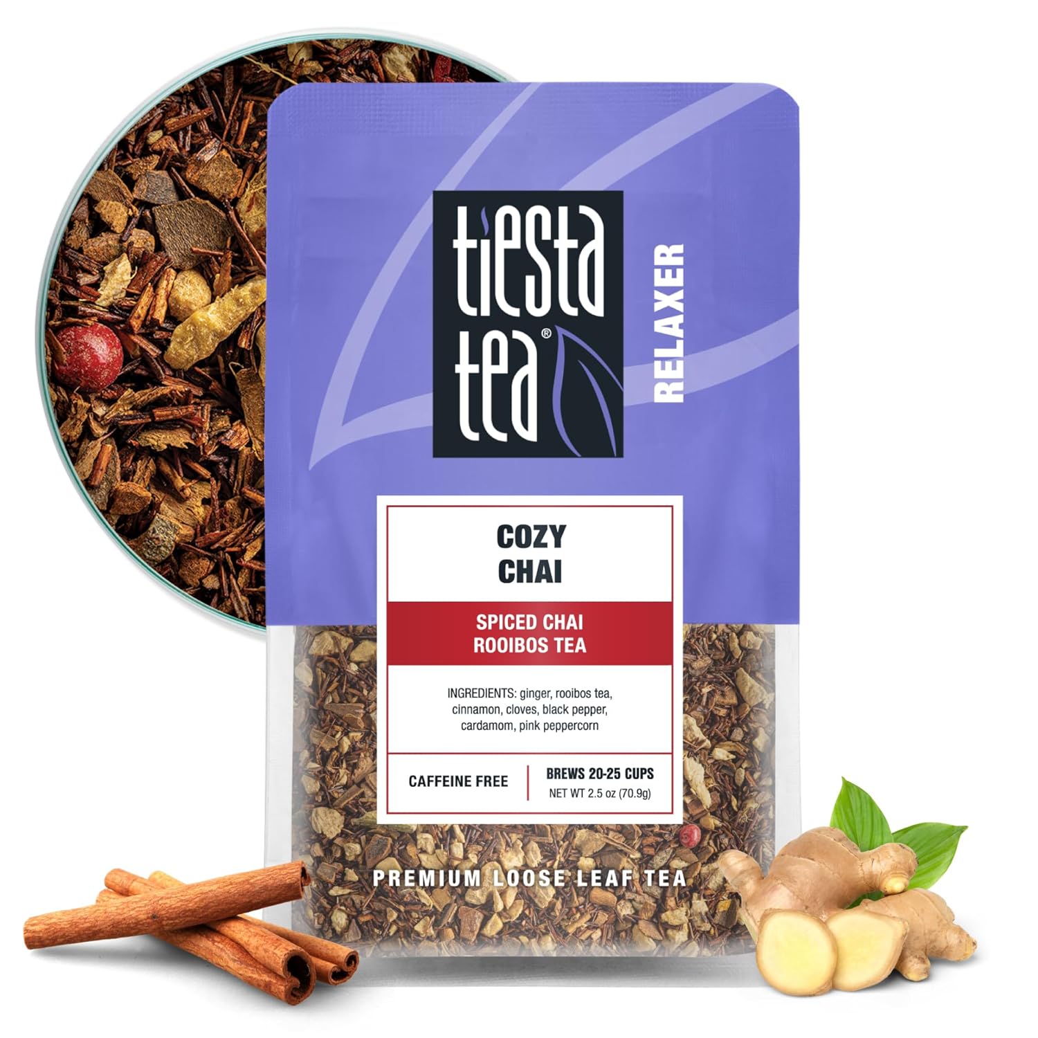 Tiesta Tea - Cozy Chai, Loose Leaf, Spiced Chai Rooibos Tea, Premium Caffeine-Free Herbal Blend, Makes Hot or Iced & Up to 25 Cups, 2.5oz Resealable Pouch