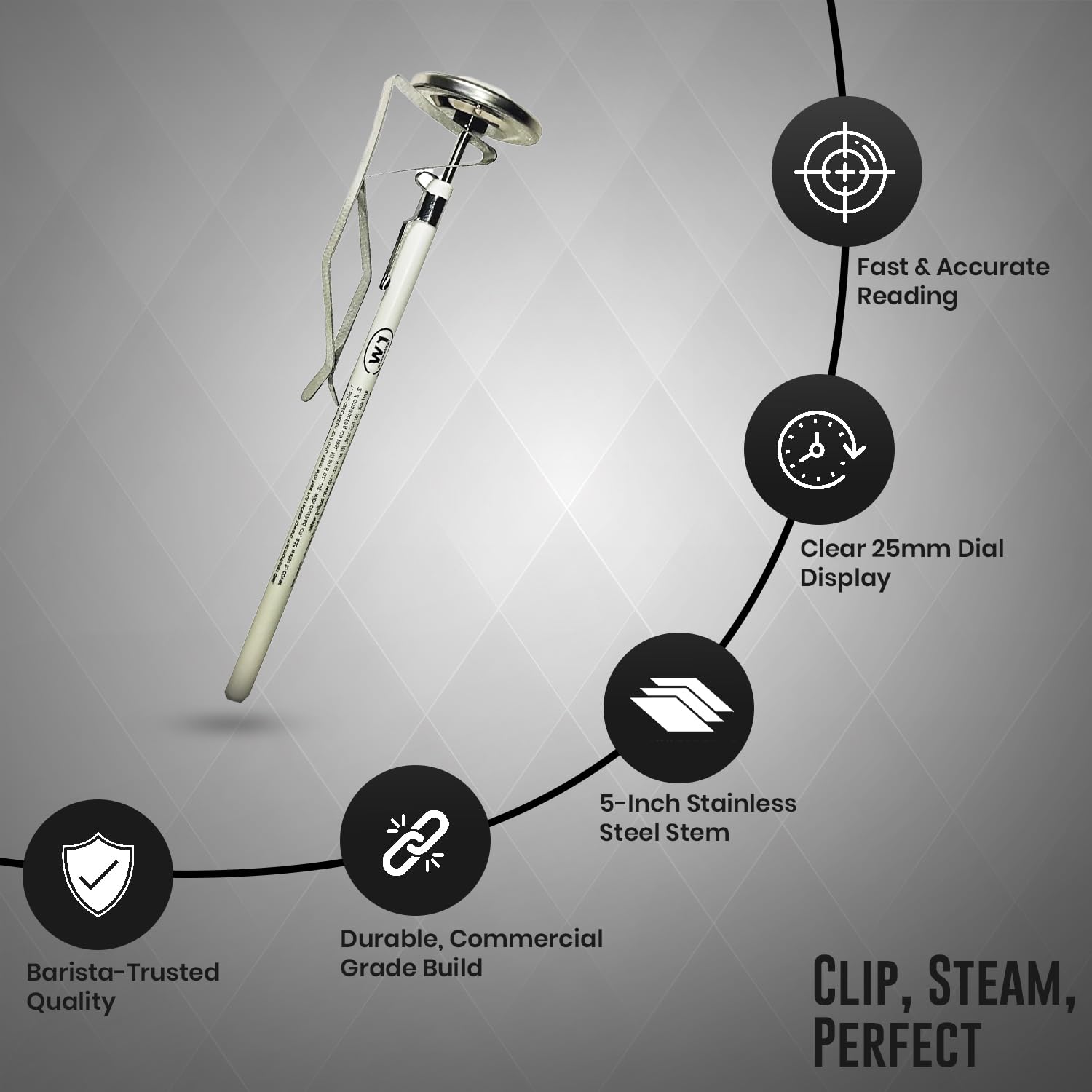 - ππππ πππ π ππ ππππ πππ ππππππππππ πππ: A versatile addition to any kitchen, our 7" Easy Steam Thermometer combines fast reading, user-friendly features, and unmatched reliability, making it the ultimate choice for home coffee enthusiasts, professional baristas, and bustling restaurant settings. Increase the quality of your beverages and elevate your coffee game by choosing the best thermometer on the market.