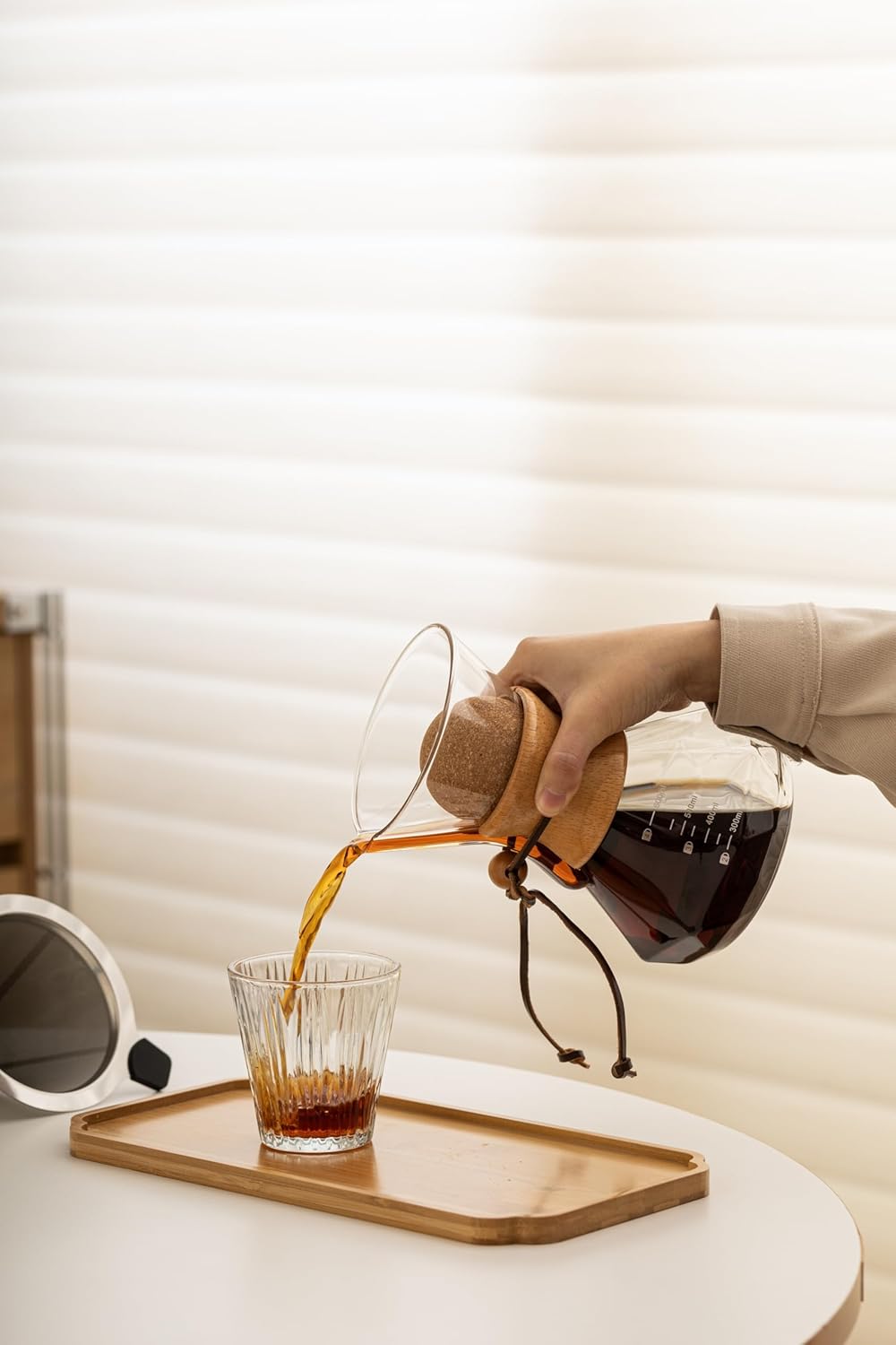 Pour Over Coffee Maker With Wood Sleeve,13.5oz/400mlPour Over Coffee Dripper,Pour Over Coffee Maker Set With Cork Stopper (13.5oz/400ml)