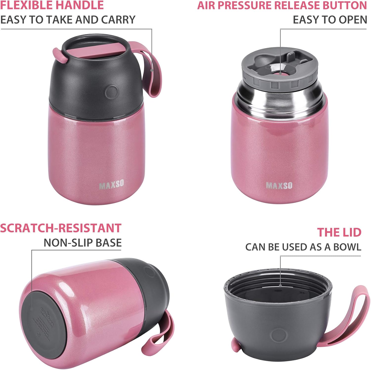 Insulated Food Jar for Hot & Cold Food for Kids Adult,17 oz Soup Thermo Hot Food Containers for Lunch, Triple Layer Insulation Stainless Steel Food Jar with Spoon (Pink)