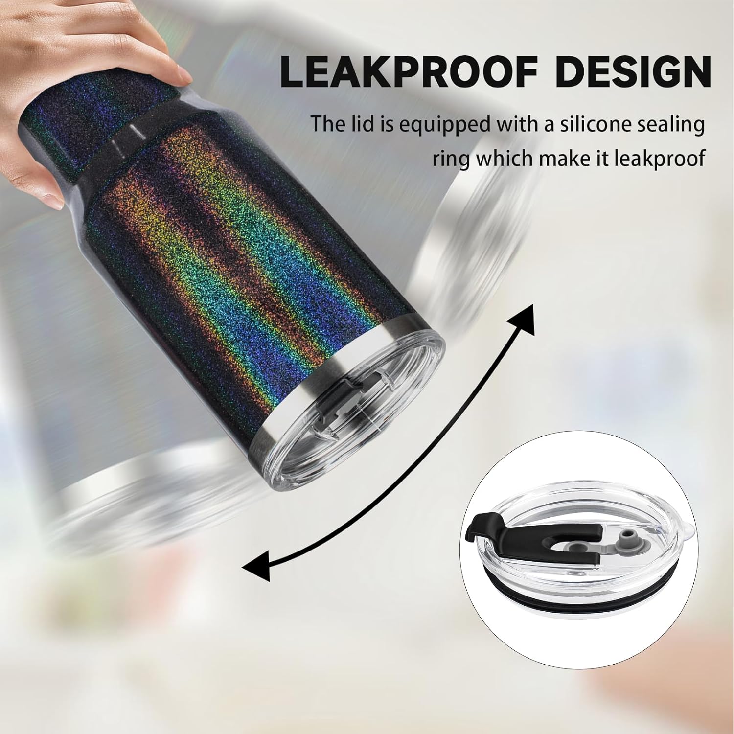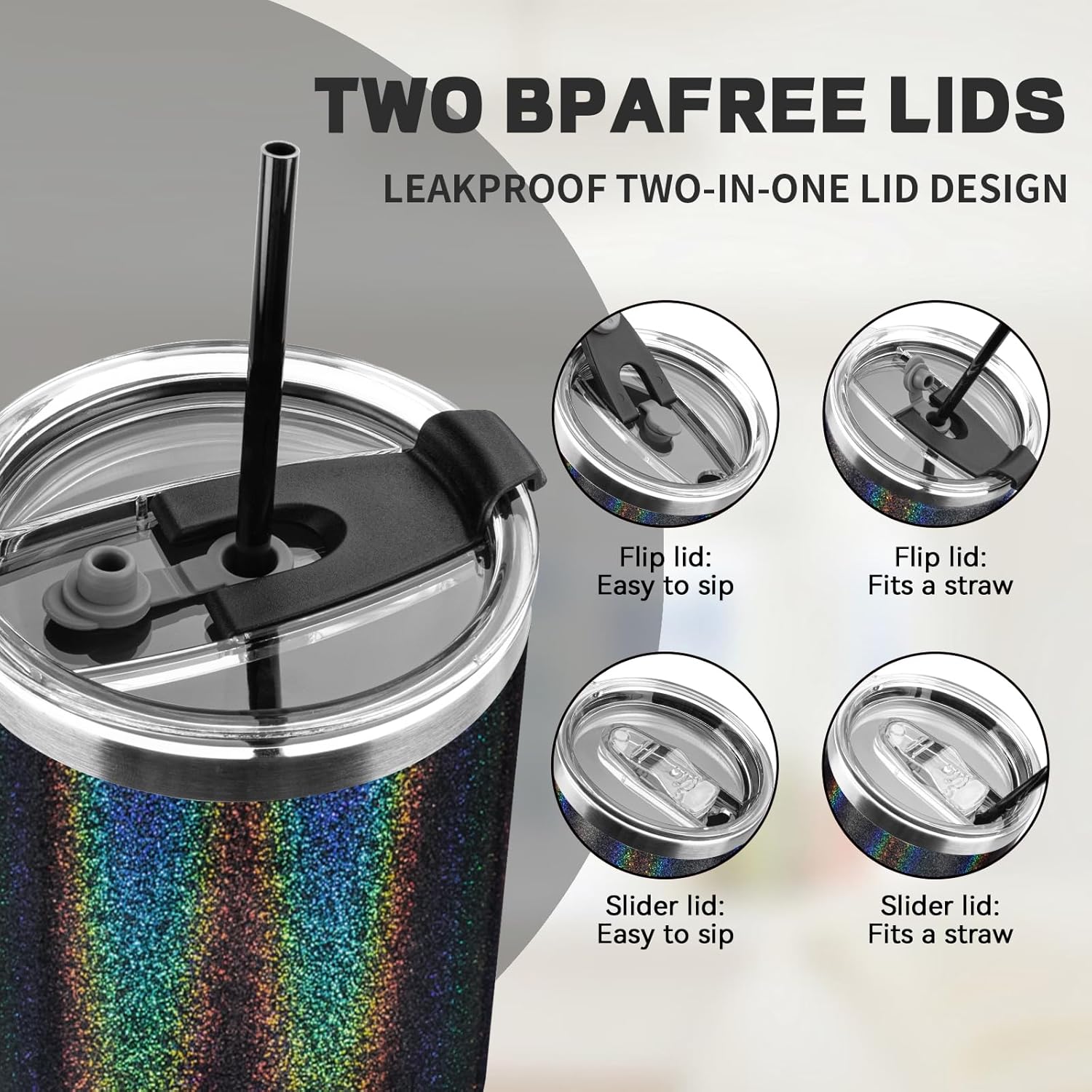 40 oz Tumbler with Lids and Straws, Stainless Steel Insulated Coffee Tumbler, Double Wall Vacuum Insulated Travel Mug Cup, Leakproof Thermal Coffee Cup for Hot and Cold Drinks (Glitter Black)