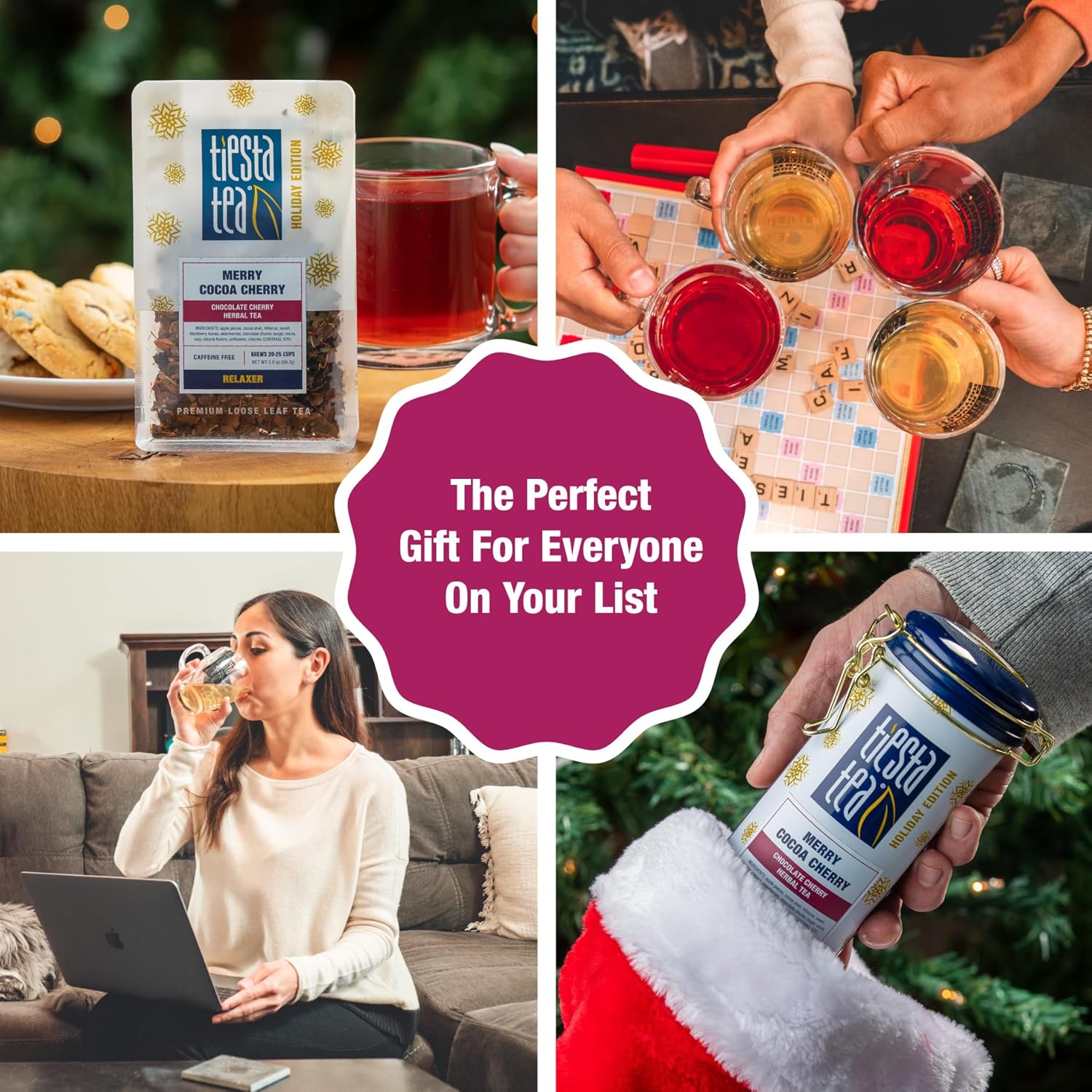 Tiesta Tea - Merry Cocoa Cherry Loose Leaf Tea, Chocolate Cherry Herbal Blend, Non-Caffeinated, Brew Hot or Iced, Makes up to 25 Cups, Resealable Bulk Pouch, 2 Ounce