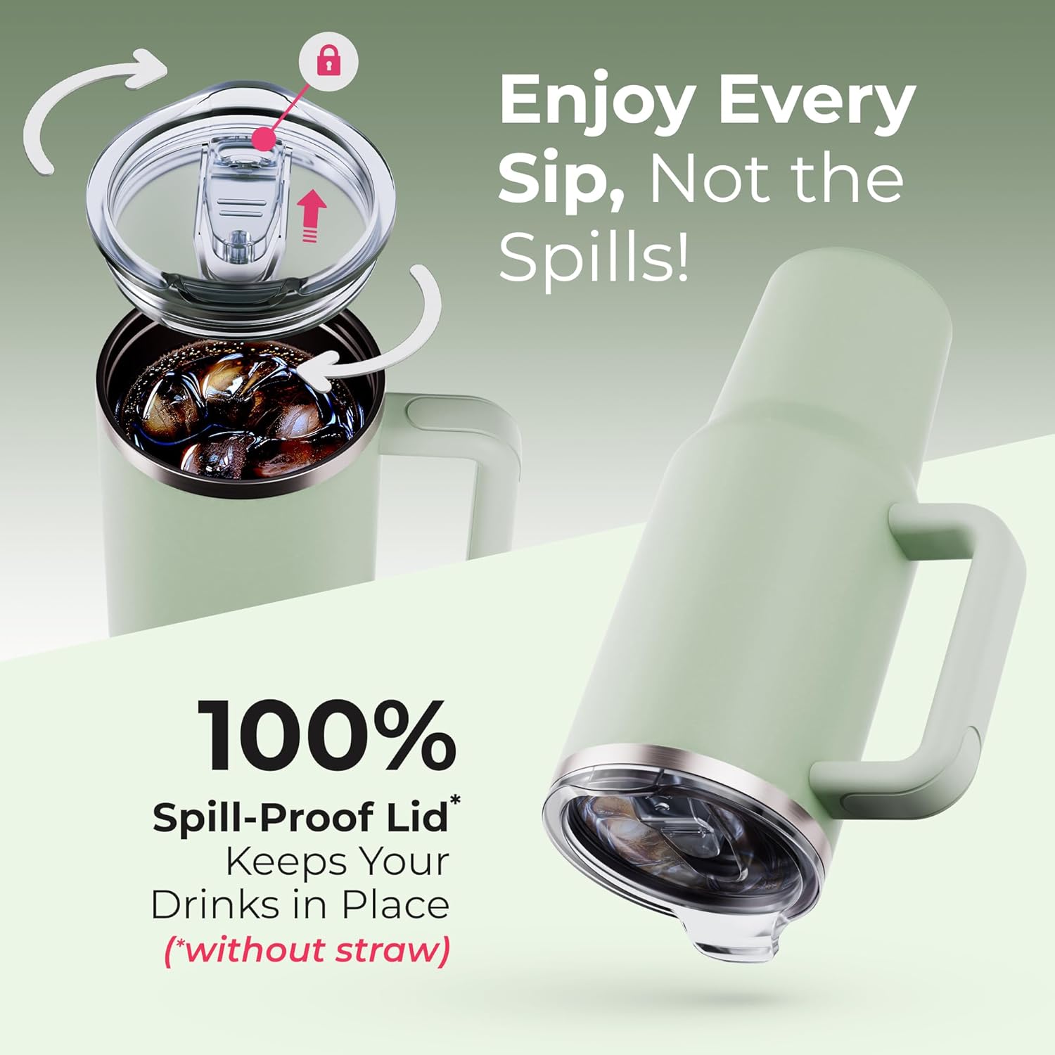 - Dishwasher Safe and Easy to Clean: Designed for convenience, this leak proof tumbler is dishwasher safe. The stainless steel construction ensures long-lasting durability, while the large handle adds to its functionality. Compatible with most cup holders, it's perfect for use at home, in the office, or on the go.