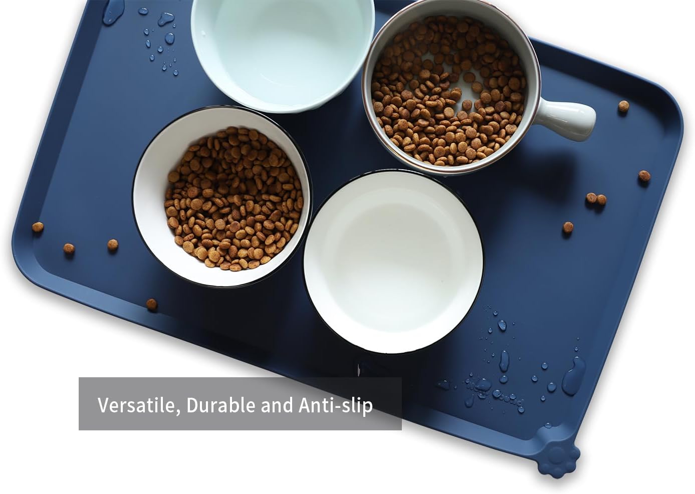 Hoki Found L Silicone Pet Food Mats with High Lips - Non Slip Cat Dog Bowl Placemats - Waterproof Cat Dog Feeding Mat - Indigo Ink