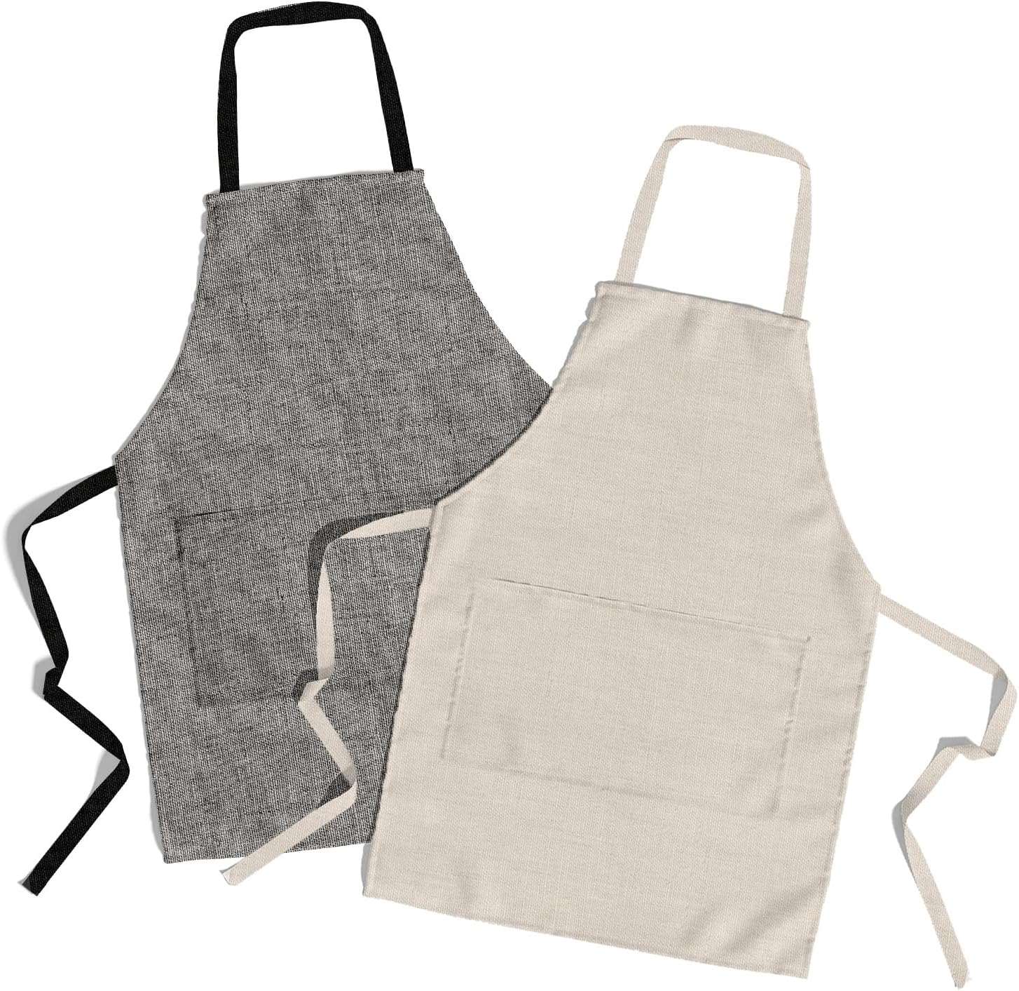 - We have created a new addition to our apparel, which is our amazing pack of 2 organic aprons with their pleasant well-matched colors - natural beige and grey. They are made with organic cotton, so you can not only be incredibly comfortable in them but also environmentally conscious, which is something we all have to strive for! Nowadays, we should really be concerned about the environment and try our purchases to be as environmentally friendly as possible.