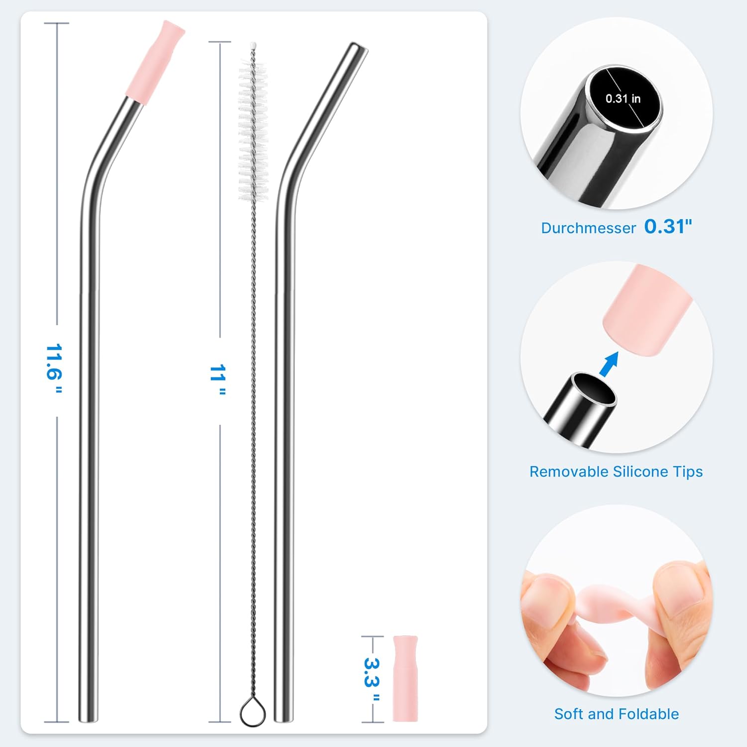 - 【Silicone Tips】 Our straws are paired food-grade silicone tips for a safe and comfortable sipping experience. The soft and flexible silicone tips ensure a gentle touch while preventing any potential harm to your teeth or lips