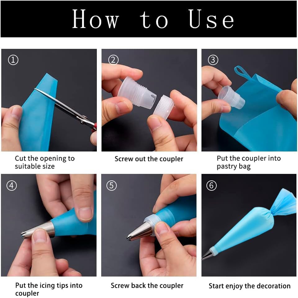 - 【Easy Use and Clean】Our cake decorating supplies are very easy to assemble and clean. Silicone pastry bags support different color icing while decorating cakes or cupcakes and couple for quick tip switching. Small frosting tips are seamless, easy to clean.