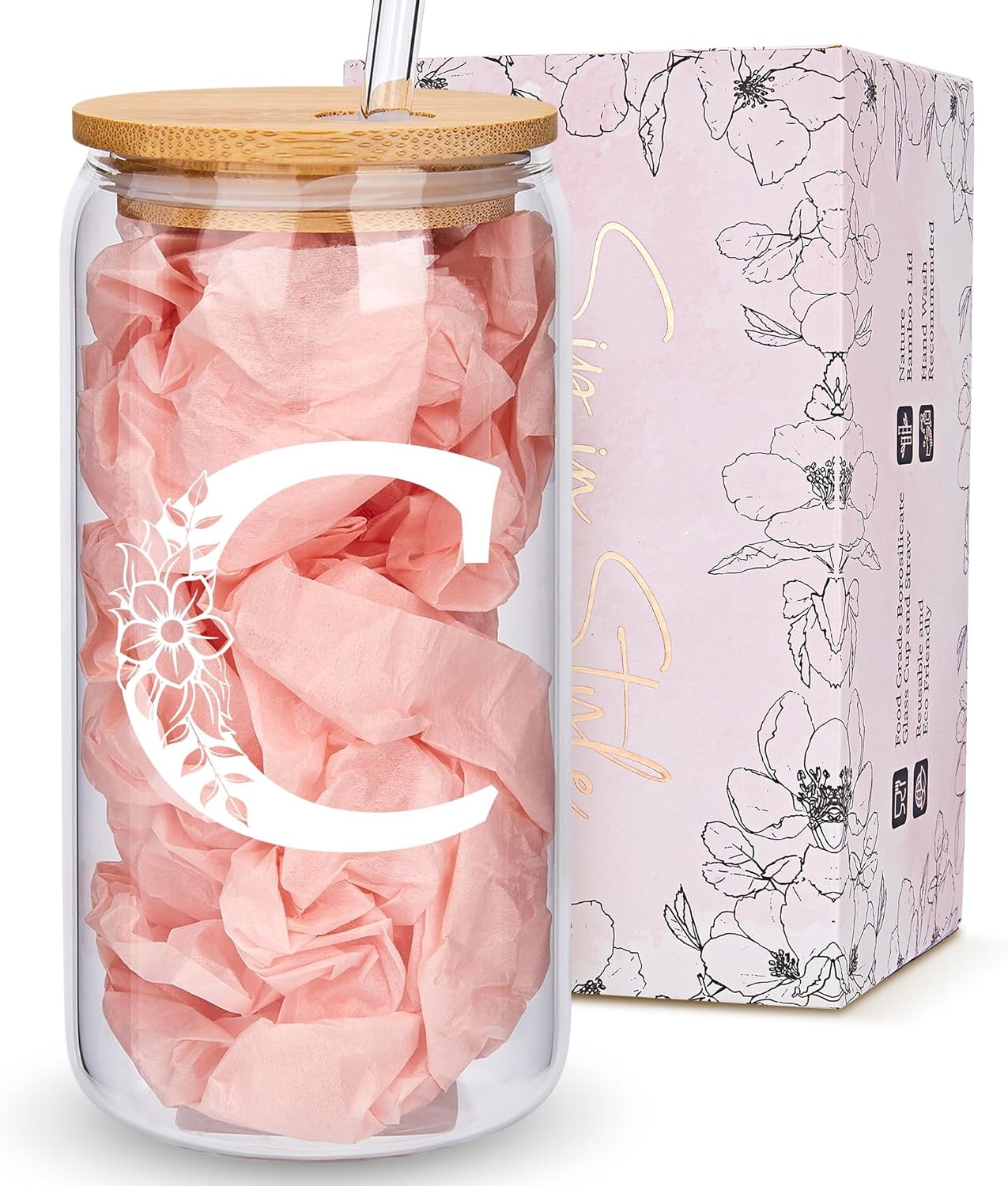 - HIGH-QUALITY AND DURABLE: This floral monogrammed glass cup is made of high borosilicate glass, ensuring it can withstand high and low temperatures without cracking easily.