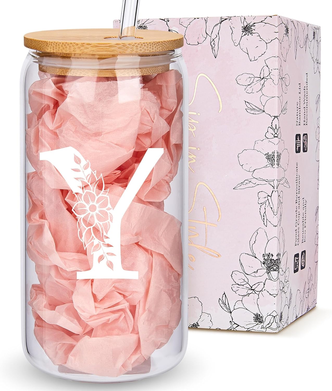 - HIGH-QUALITY AND DURABLE: This floral monogrammed glass cup is made of high borosilicate glass, ensuring it can withstand high and low temperatures without cracking easily.