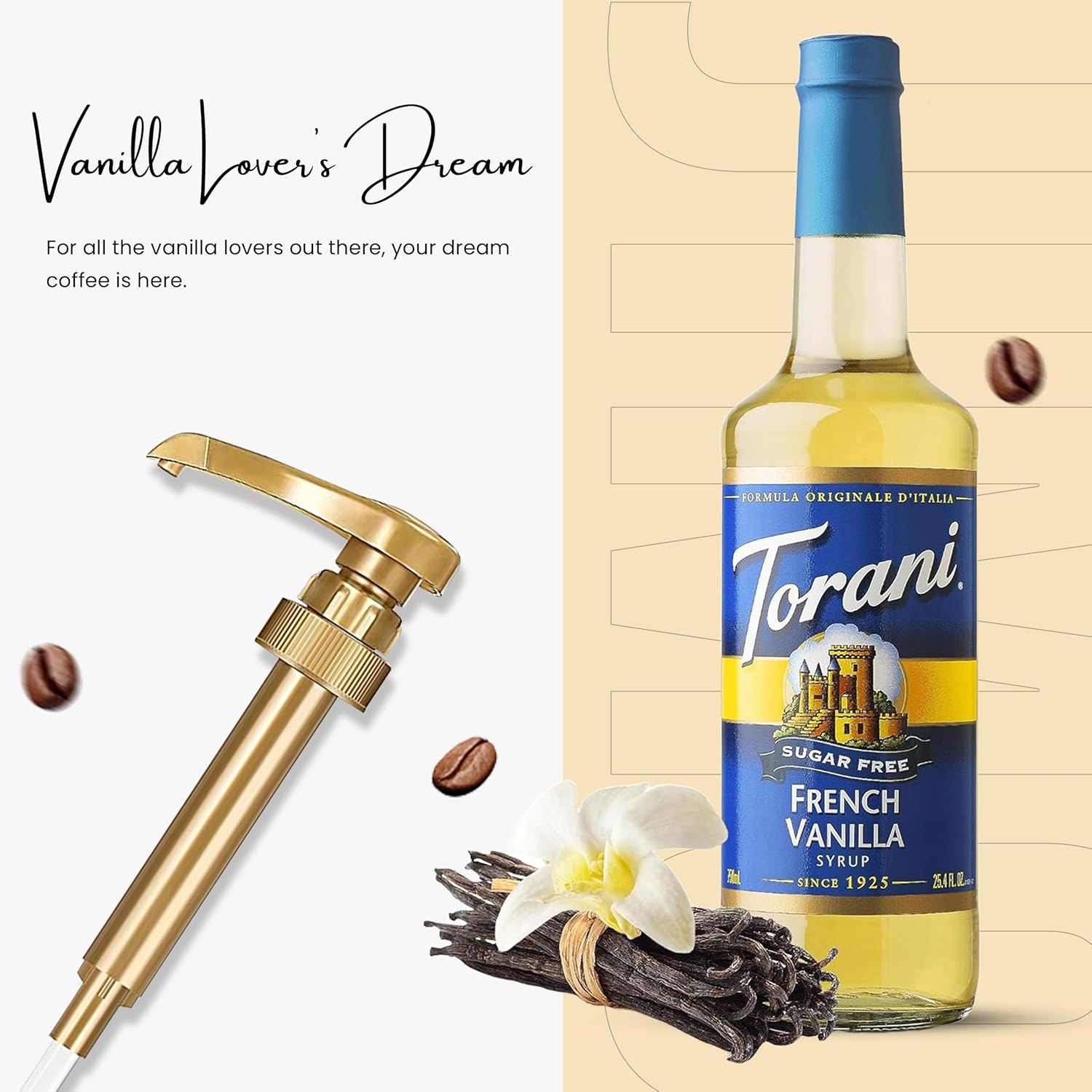 Jimoco® Syrup Pump Dispenser + Torani® Sugar Free French Vanilla Syrup, 25.4 oz - Coffee Syrup Pump & Flavoring Bundle