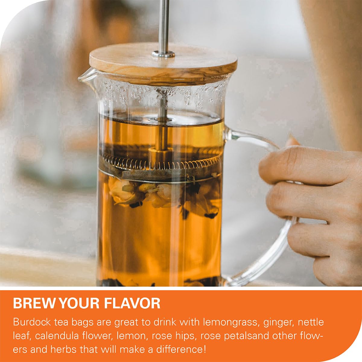 - 【Pleasant Flavor】Burdock Root tea is amber in color, clear like a broth, mooth and slightly sweet taste, and has a unique earthy flavor, can be enjoyed either hot or cold.