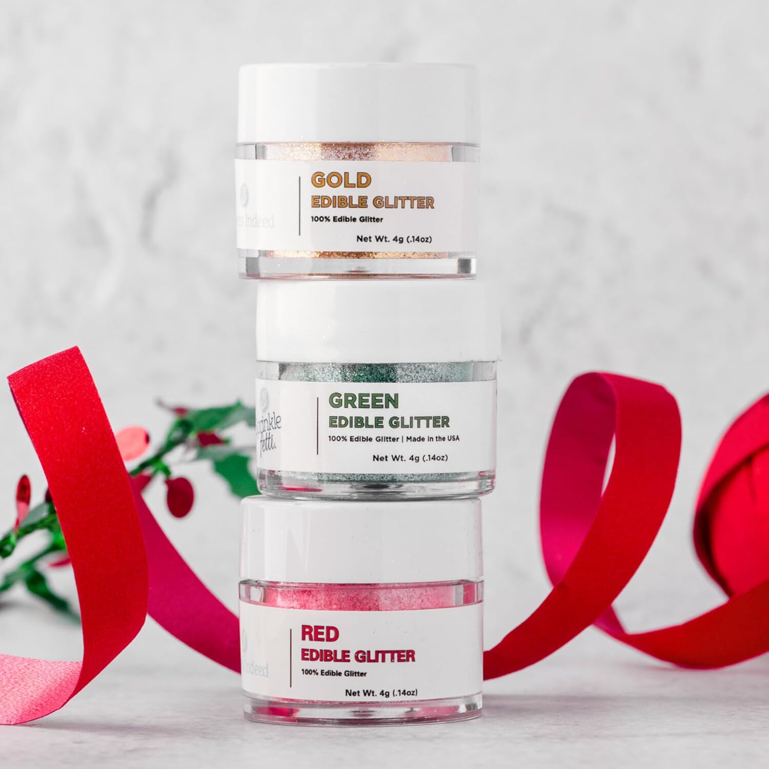 Sweets Indeed Edible Glitter, Perfect for Drinks, Cocktails, Beverages & Cake Decorating, Dessert Cake Topper, 4 grams, 3 Pack (Christmas) (Christmas) (Christmas)