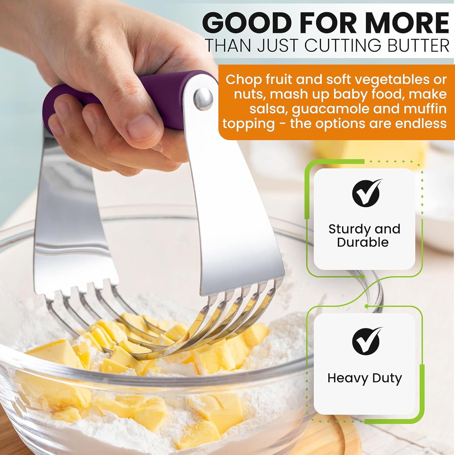 - Heavy Duty Without Being Heavy - The dough blender cuts through cold butter beautifully, making it a must-have pastry tool for bakers. It is much more effective and easier to use than a fork or potato masher and gives better results.