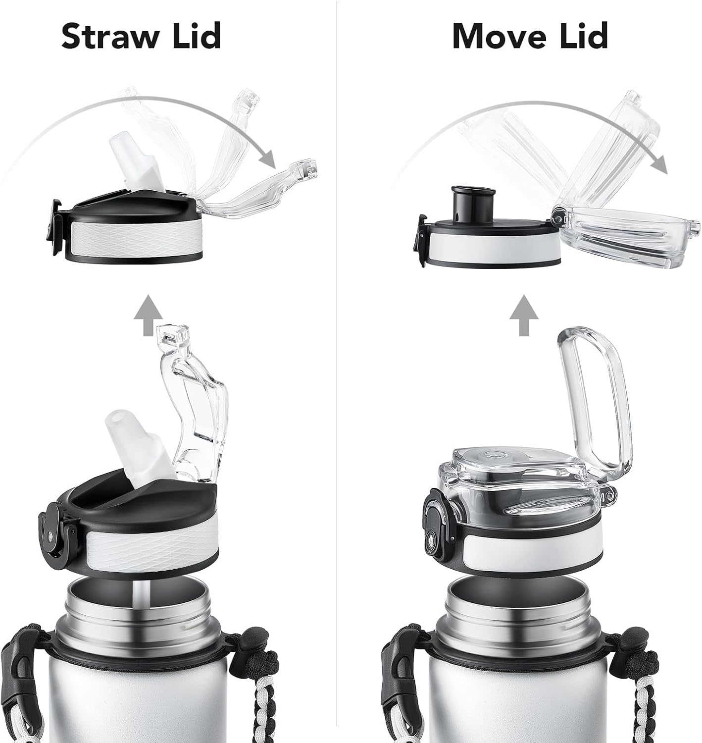 - Insulated water bottle 24 oz: 24 oz insulated water bottle has a matte finish and comes with 2 lids (Lid with Straw/No Straw) and a Paracord handle for easy portability; Its wide mouth makes it easy to fill, pour, and clean, and the leak-proof cap ensures worry transport.