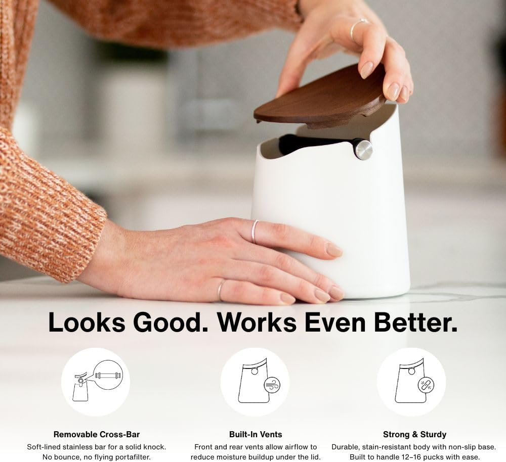 - EASY TO CLEAN: Designed for simple care—hand wash the body and crossbar, and wipe the lid with a damp cloth. Regularly empty used grounds to prevent buildup and keep your knock box fresh and ready to use.