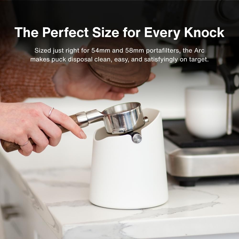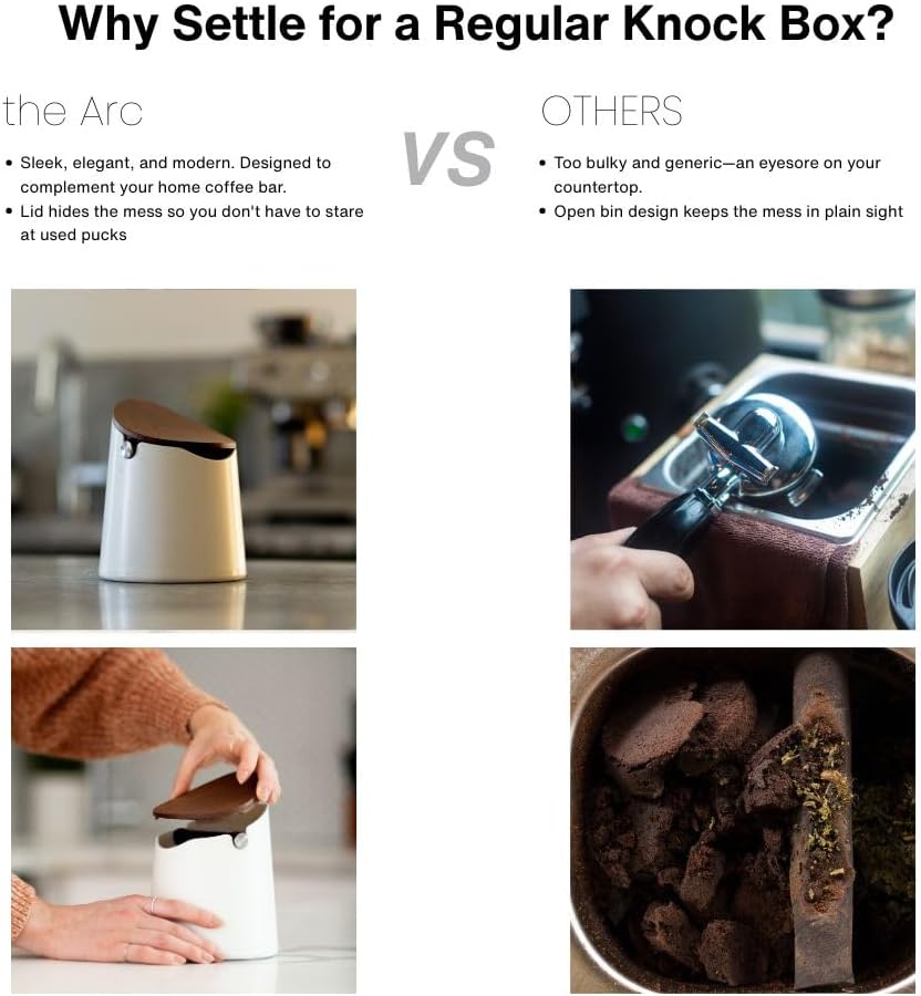 - SPEEDY CLEAN-UP, NO MESS: The Crema Coffee Arc Knock Box makes espresso puck removal fast and easy. Simply lift the lid, knock out your grounds, and close it back up for a clean, hassle-free routine.