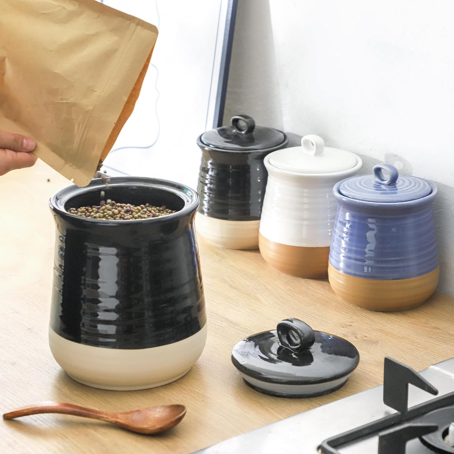 - ENHANCED KITCHEN ORGANIZATION: Declutter your kitchen with this 75 oz ceramic food storage jar; spacious enough for various items, it keeps your countertop organized and free from chaos