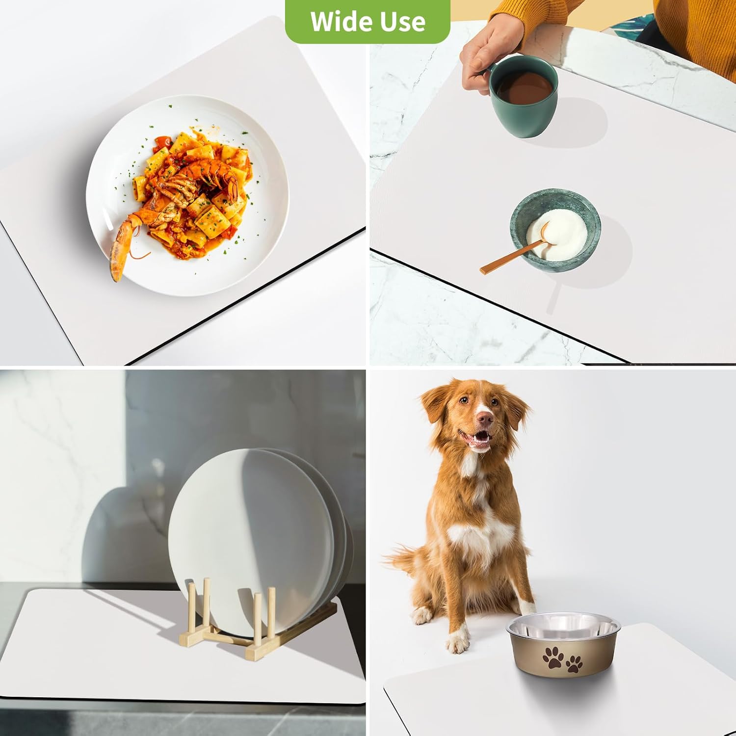 - 【Effortless Maintenance】 Designed for busy households, this mat is not only easy to wipe clean but also rinseable, machine washable, and even dishwasher safe. Whether you use it as a drying mat for dishes or a coffee bar mat, it’s built for hassle-free upkeep and long-lasting durability.