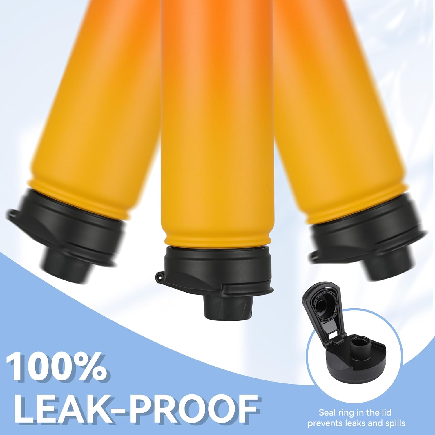 - 【Spout Lid & Straw Lid】 This water bottle comes with 2 lids: an innovative leak-proof spout lid and a newly improved straw lid that has been enhanced for better flow. Easily fill your water bottle with ice and clean it through the wide mouth opening. Both allow easy one-handed or hands free sipping, they are designed for you to drink anytime, anywhere.