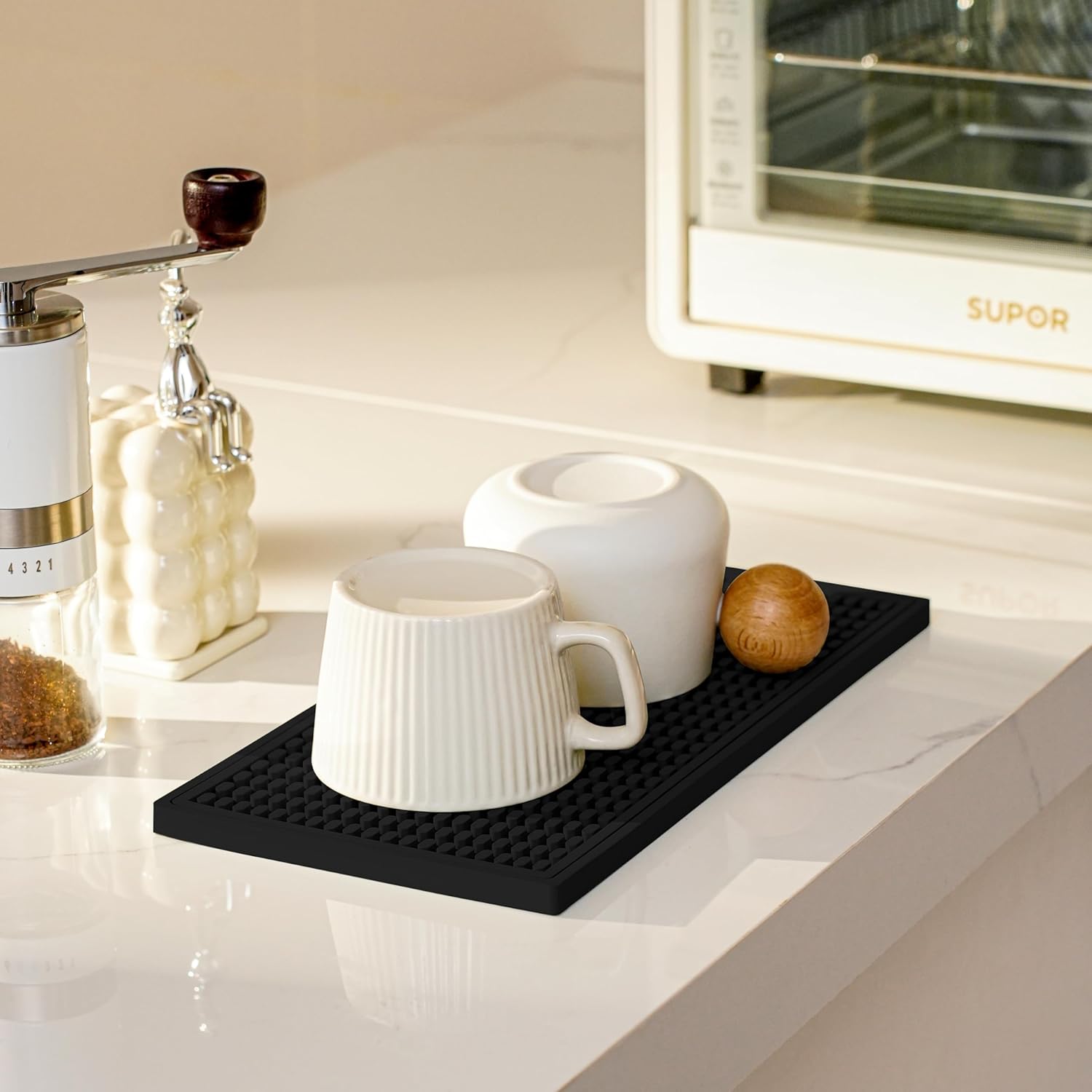 - MULTIFUNCTIONAL USE: This bar mat is not only suitable for home bars and coffee bars, but also can be used in commercial bars, restaurants, hotels and other places. It is not only a functional non-slip mat, but also enhances the overall decorative quality of your bar or coffee counter through its simple yet stylish design.
