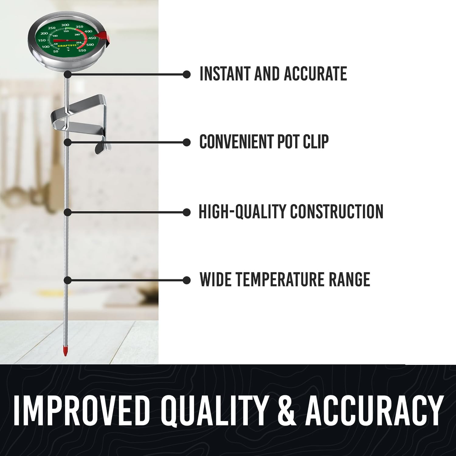 - REAL LIFETIME WARRANTY --- At Craft911, we're committed to providing our customers with high-quality products and exceptional customer service. Any issue with the instant-read deep fry thermometer we will replace it at no cost. This deep fry thermometer is also known as a candy thermometer, cooking thermometer, oil thermometer for frying, kitchen thermometer, and candy thermometer for candy making. Shop confidently at Craft911, knowing your satisfaction is our top priority.