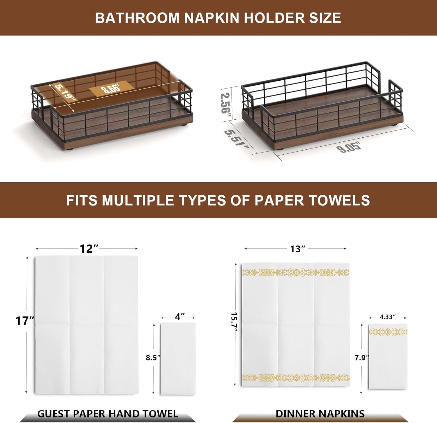- Quite Versatile: This guest towel holder hold paper towels in the guest bathroom for hand drying; hold paper bath towels for your powder room, easy to retrieve towel when needed; It can also be used as a lunch napkin holder, looking very nice on the dining table
