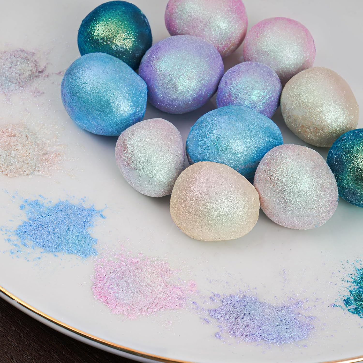 - ✔️【Easy to Use】Specially developed for food decoration and craft industries, this luster dust produces realistic looks by highly pigmented colors with a metallic finish. The pretty fine grain is more convenient for painting. To add glimmer and sparkle to your creations, simply sprinkle or dry brush the luster glitters on them. This product adheres very well to both wet and dry mediums. Attention: Seal and store glitter powder in a cool and dry place after use. Do not expose to excessive heat.