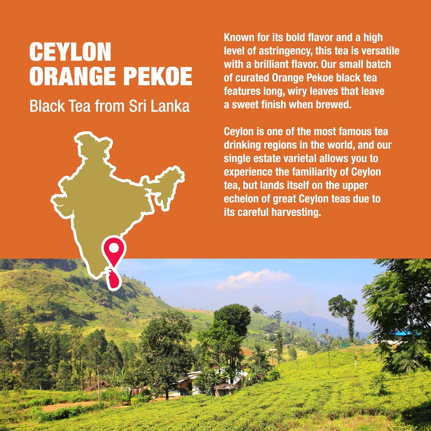 - CEYLON ORANGE PEKOE BLACK TEA: Experience the essence of Sri Lanka, formerly known as Ceylon, in every sip of our Ceylon Orange Pekoe Black Tea. This loose leaf tea offers a harmonious blend that embodies the boldness of Ceylon's flavors with a pleasant touch of astringency, making it a versatile and brilliantly flavored choice.