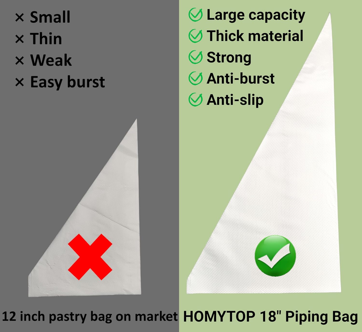 - Unparalleled Capacity: Our 18 inch piping bags boast a remarkable 1-liter volume, larger than most 12 and 16 inch piping bags in the market. Bid farewell to frequent bag changes and embrace uninterrupted creativity.