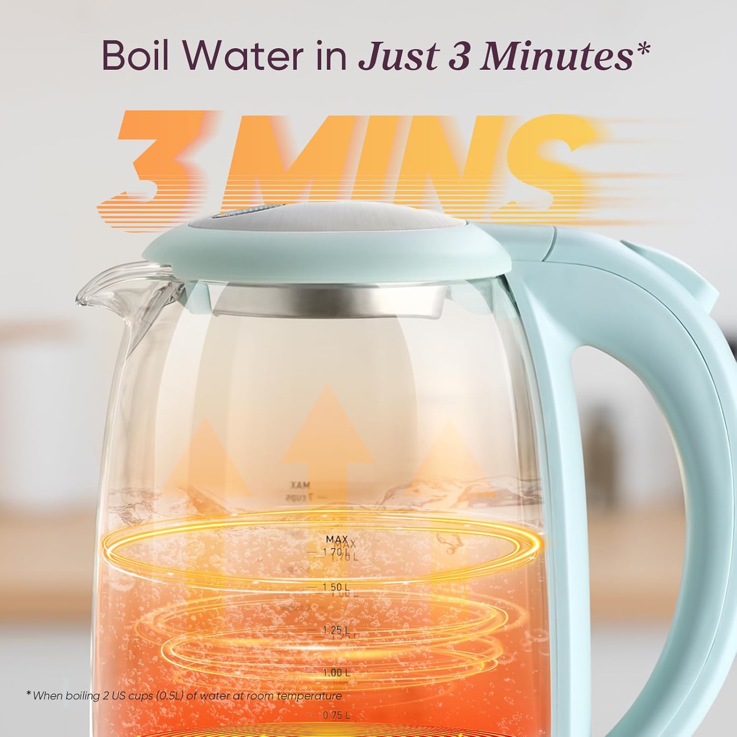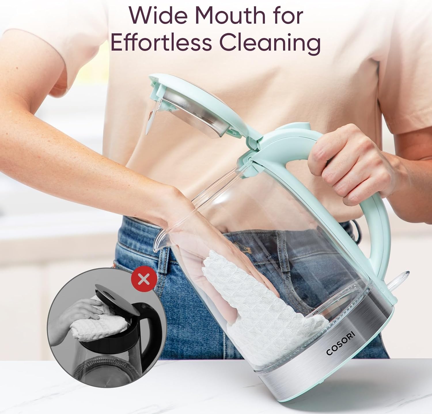 Cosori Electric Kettle, No Plastic Filter & Spout, Tea Kettle & Hot Water Boiler For Coffee & Tea, Water Heater & Teapot, Automatic Shut Off, Borosilicate glass, Green, 1.7L/1500W