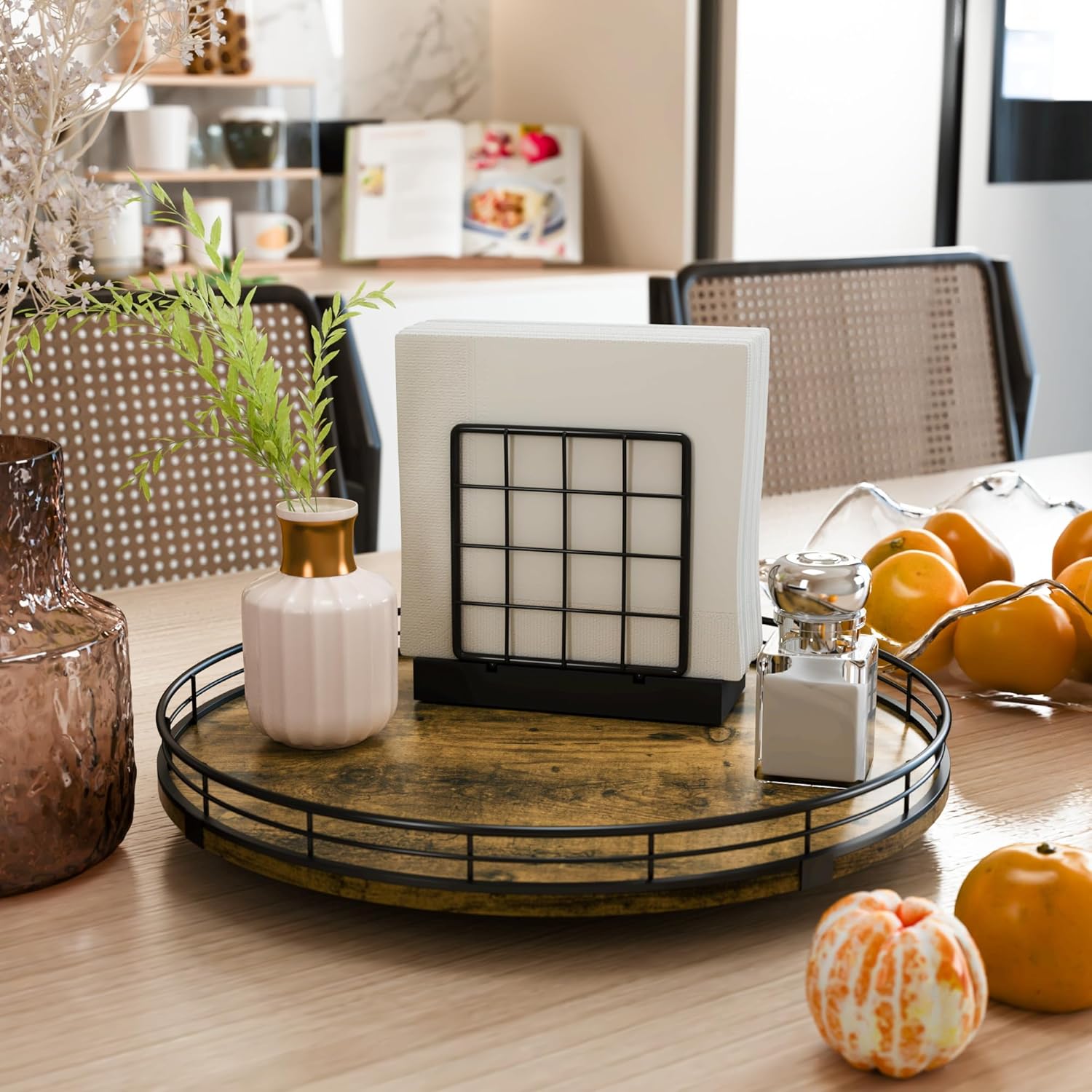 - Wide Application - The lazy susan organizer adopts handmade craftsmanship. Its MDF material is strong and long-lasting, not easy to wear and has no odor. The surface has exquisite texture, creating a unique rustic style