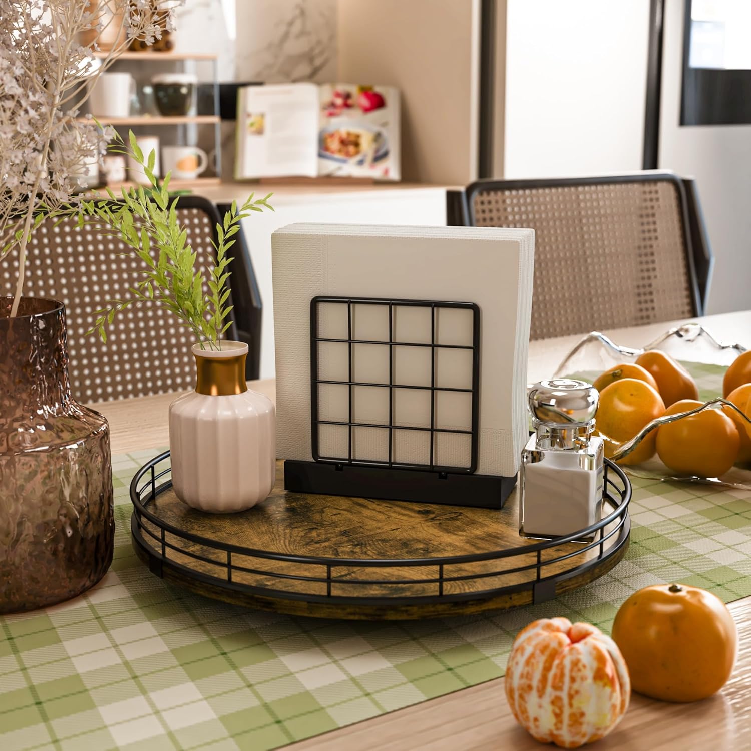 - Wide Application - The lazy susan organizer adopts handmade craftsmanship. Its MDF material is strong and long-lasting, not easy to wear and has no odor. The surface has exquisite texture, creating a unique rustic style