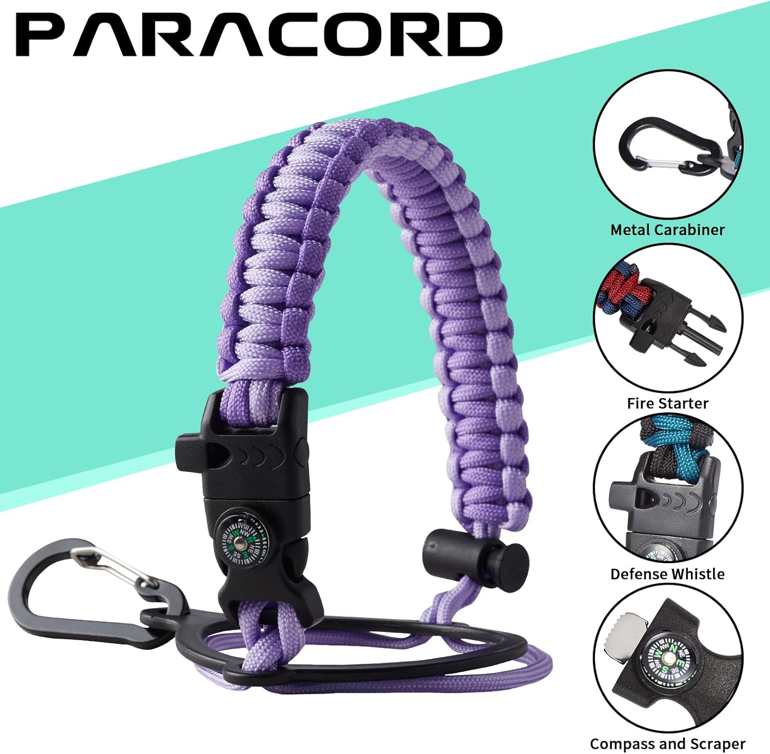 - UNIQUE PARACORD HANDLE: Bright color paracord matches the flask water bottle to give you a youthful vibe while adding a personal style. With a compass, safety loop, metal carabiner, flint, igniter and whistle to become your survival tool, making the 32 oz stainless steel water bottle with paracord an ideal survival kit for expeditions in the wild