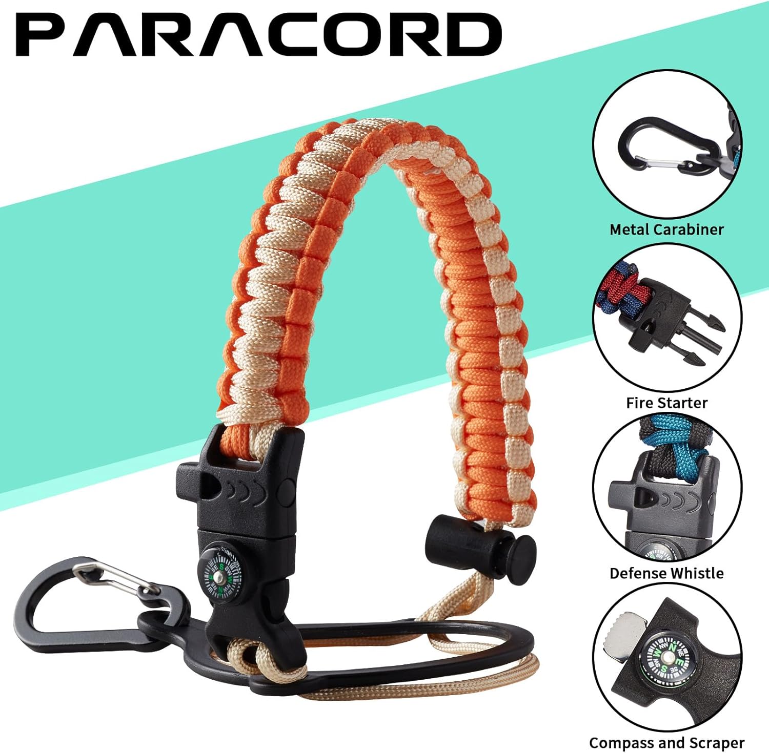 - UNIQUE PARACORD—Perfect Accessories: bright color paracord matches the flask water bottle to give you a youthful vibe while adding a personal style. It comes with a compass, safety loop, metal carabiner, flint, igniter, and whistle to become your survival tool for your wild adventures