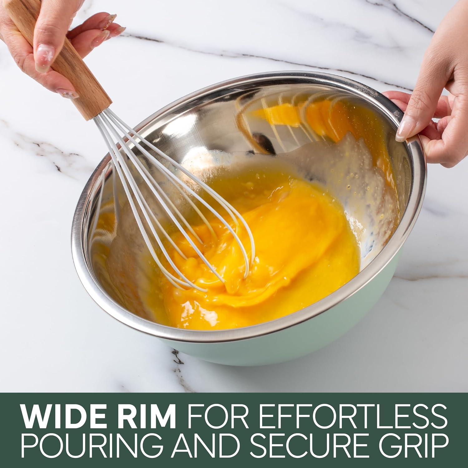 - Wide Rim- For a mess free cooking session, choose our bowls with a wide rim and lip. These features allow messy ingredients like flour, sugar and oil to be added directly into the bowl easily.