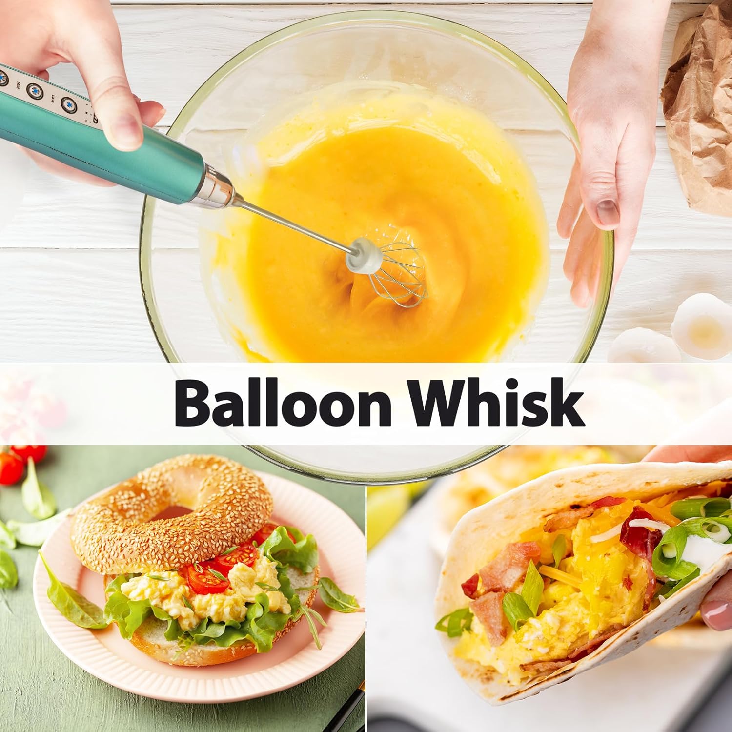 - 3 Whisks and 3 Speed Adjustable Frother : The matcha frother comes with 3 adjustable whisking speeds. SLOW SPEED for stirring egg yolks, powder drinks. MEDIUM SPEED for making jam, matcha tea. HIGH SPEED for milk or coffee froth, fluffy whipped cream, egg whites. Versatile 3 replaceable whisks: SPRING WHISK for creating milk and coffee froth, to make delicious drinks; BALLOON WHISK for mixing egg and whipping cream; HOOK WHISK for blending powders, making jam